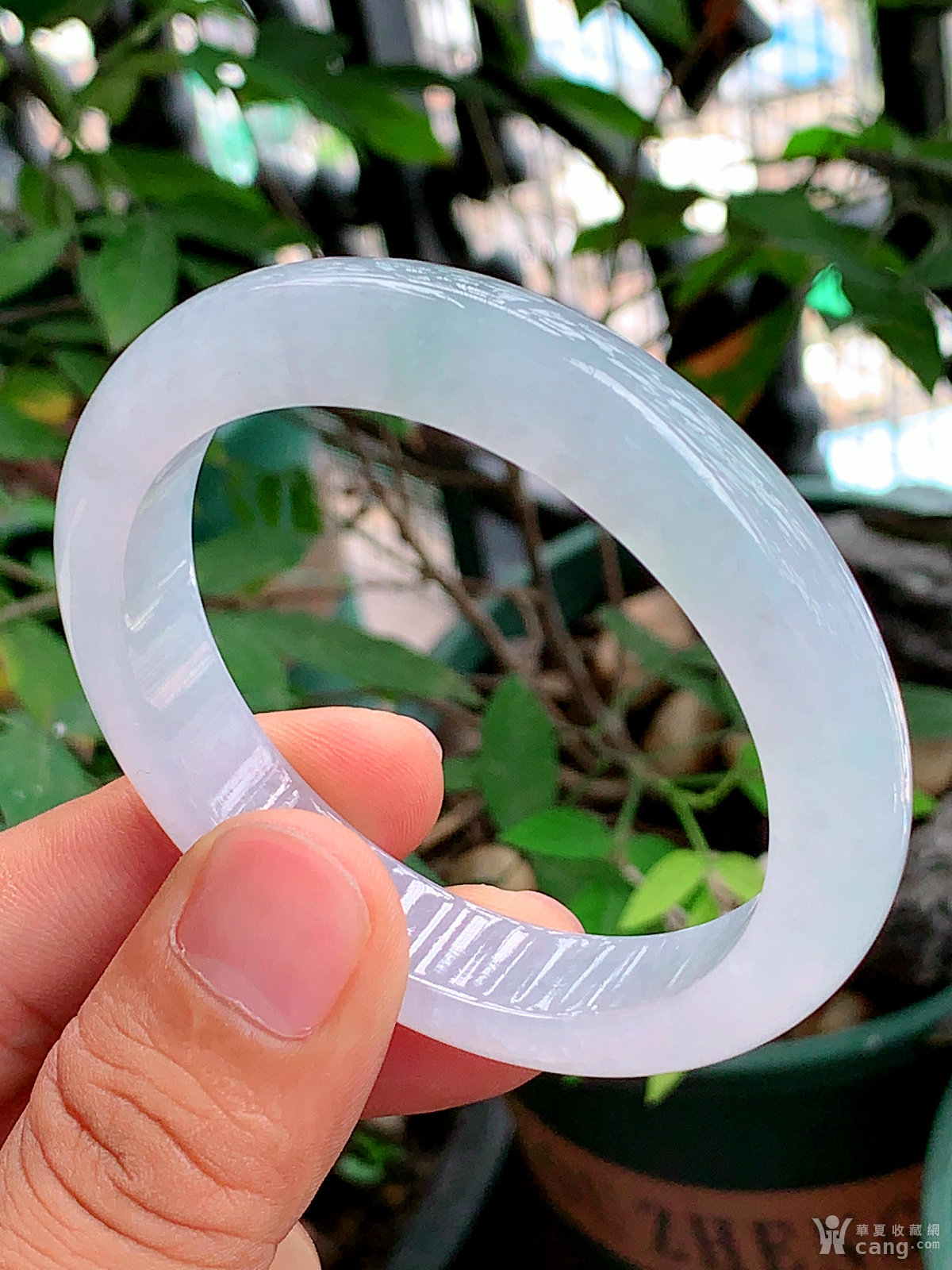 缅甸天然翡翠A货冰透水润宽边手镯56.2圈口