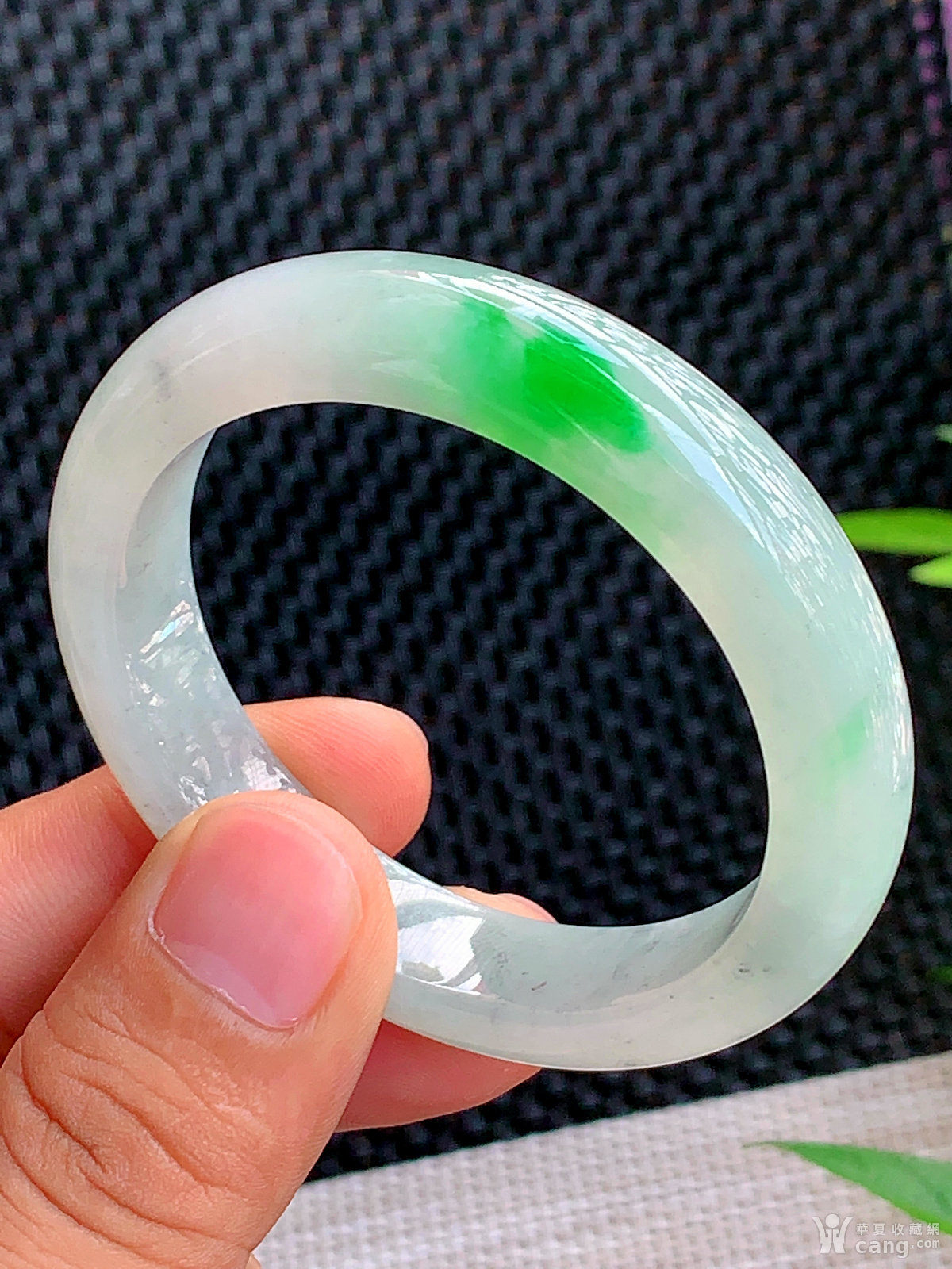 缅甸天然翡翠A货冰透水润飘花宽边手镯53.3圈口