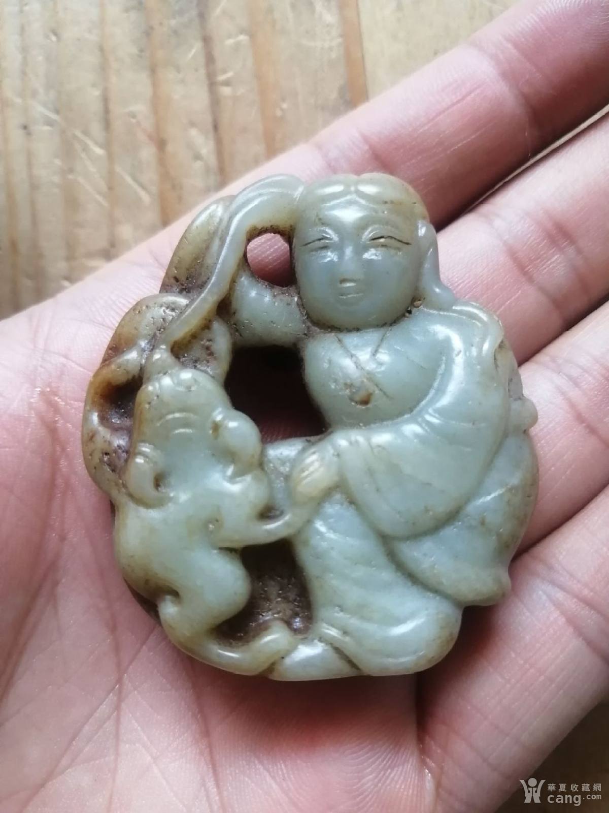 回流创汇的物件和田玉兽面满工珠子一对E155