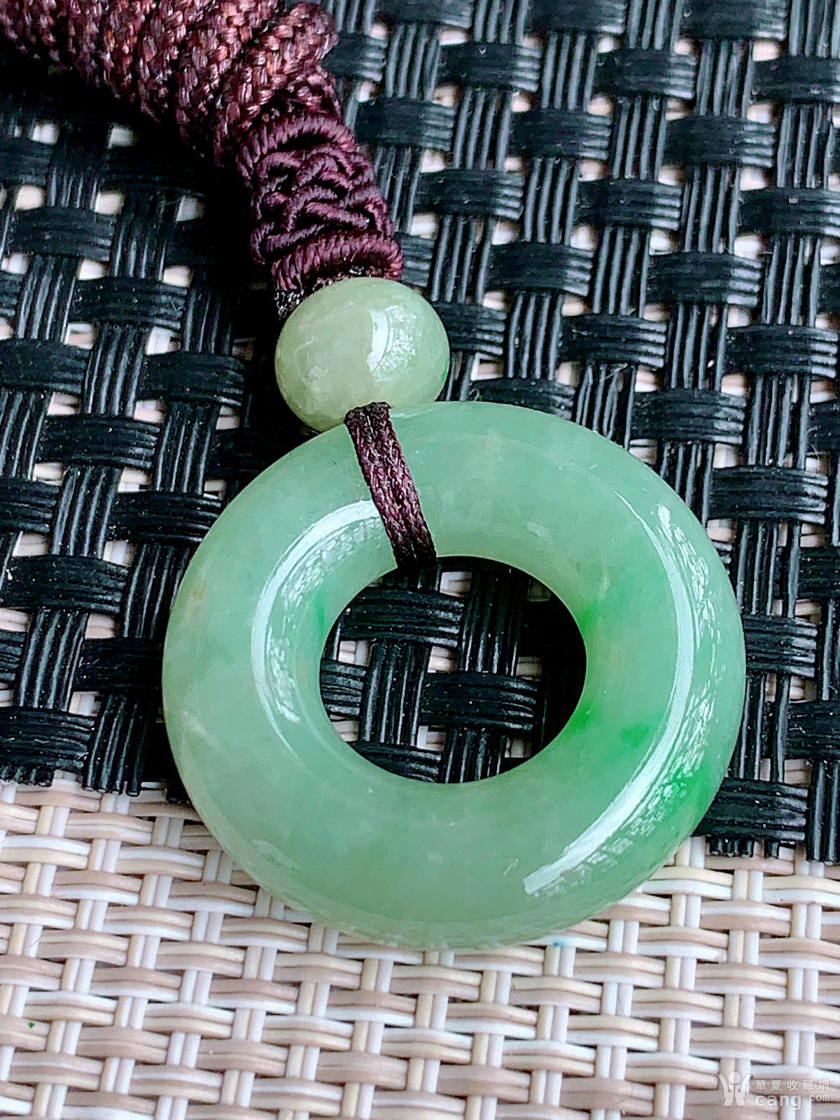缅甸天然翡翠A货冰透水润飘花平安扣