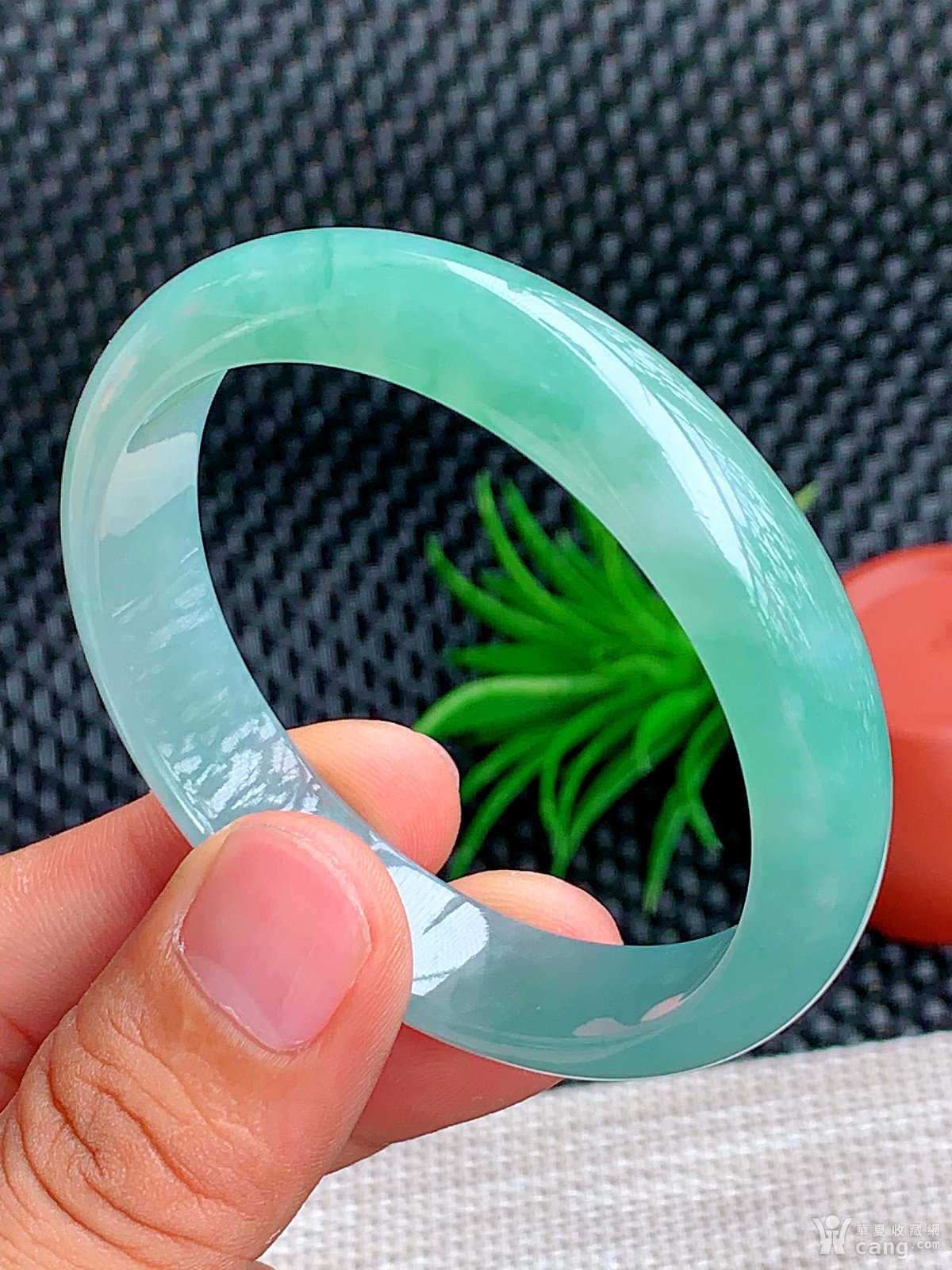 缅甸天然翡翠A货冰透水润飘花宽边手镯57.6圈口