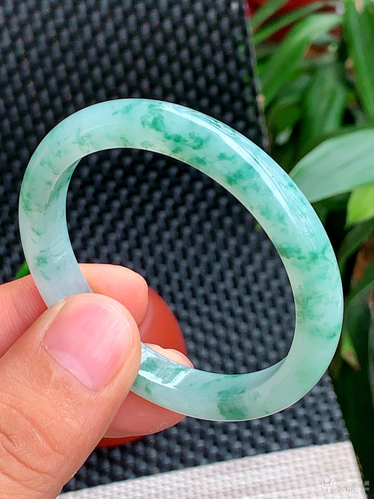 缅甸天然翡翠A货冰透水润飘花宽边手镯51.5圈口