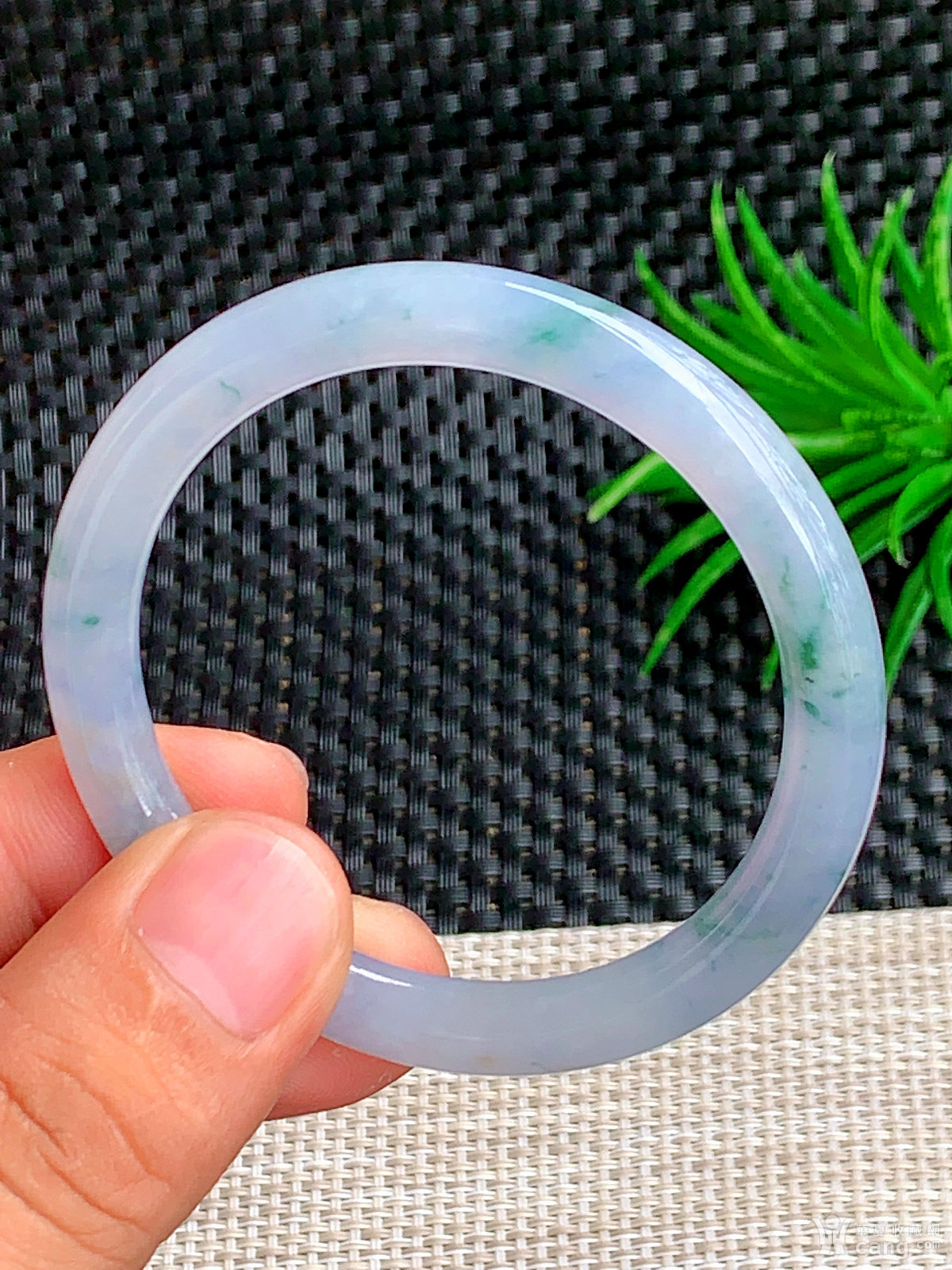 缅甸天然翡翠A货冰透水润春带彩圆条手镯54.3圈口