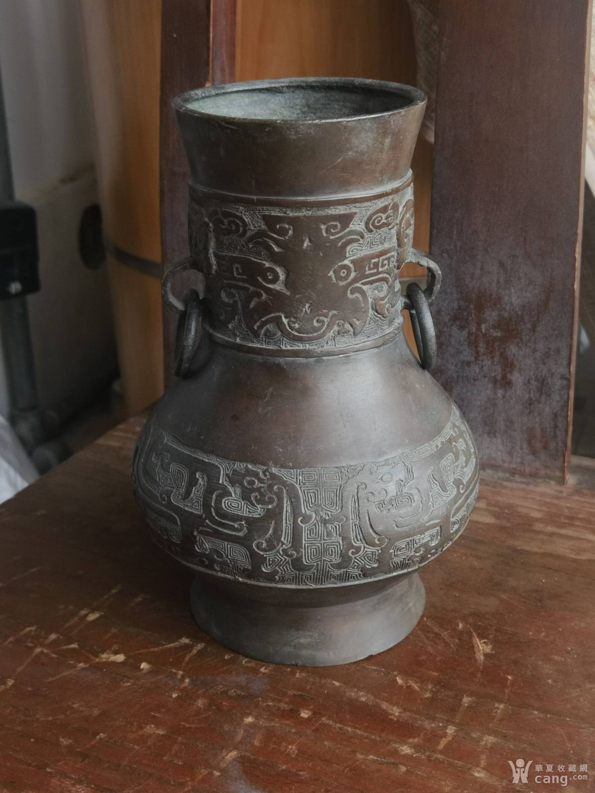 清代夔龙纹铜赏瓶,底款万寿无疆,高21.5,重1020克,