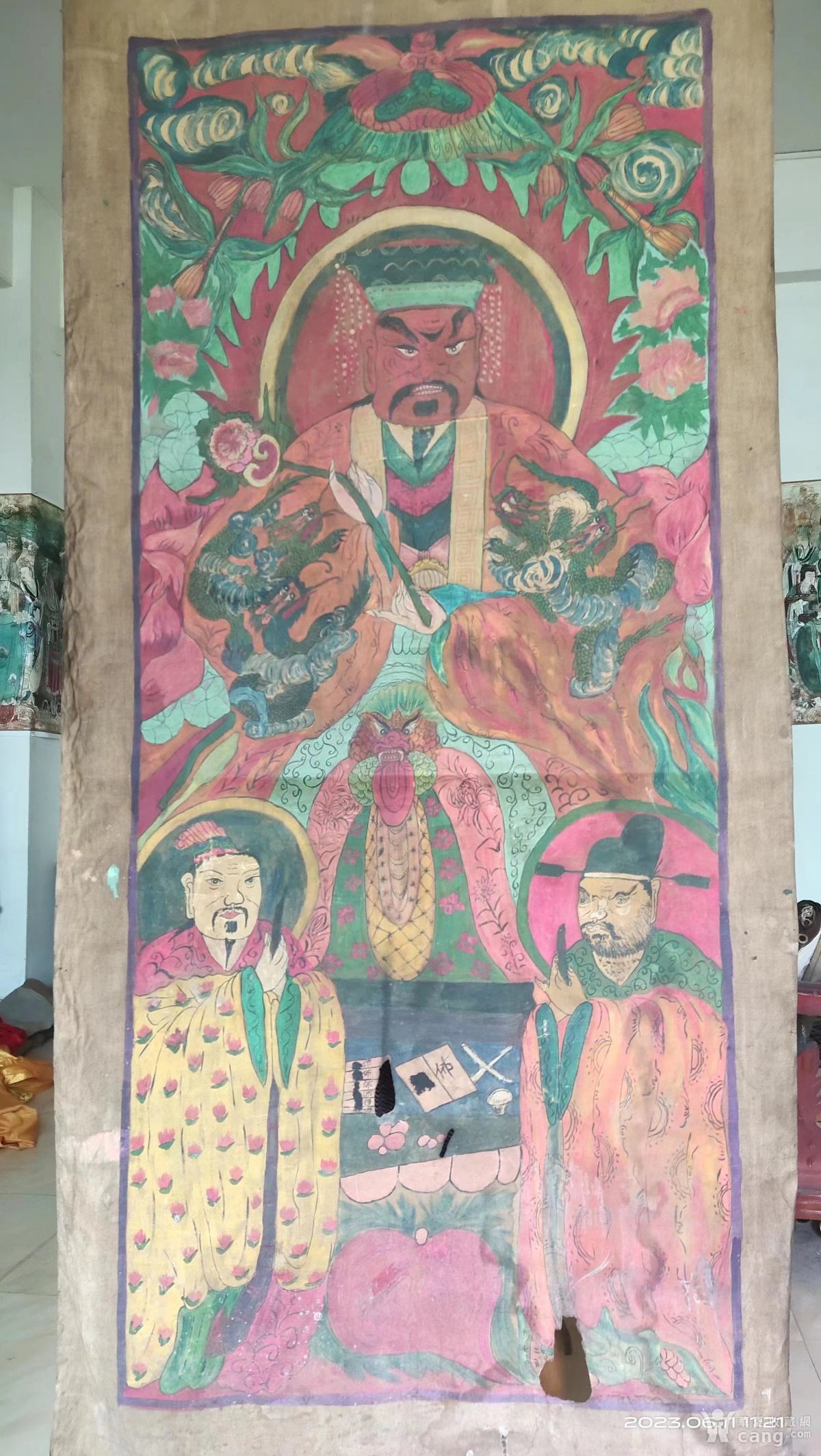 有破洞,长200宽80厘米,手绘老布画皇帝画像,不知什么神像