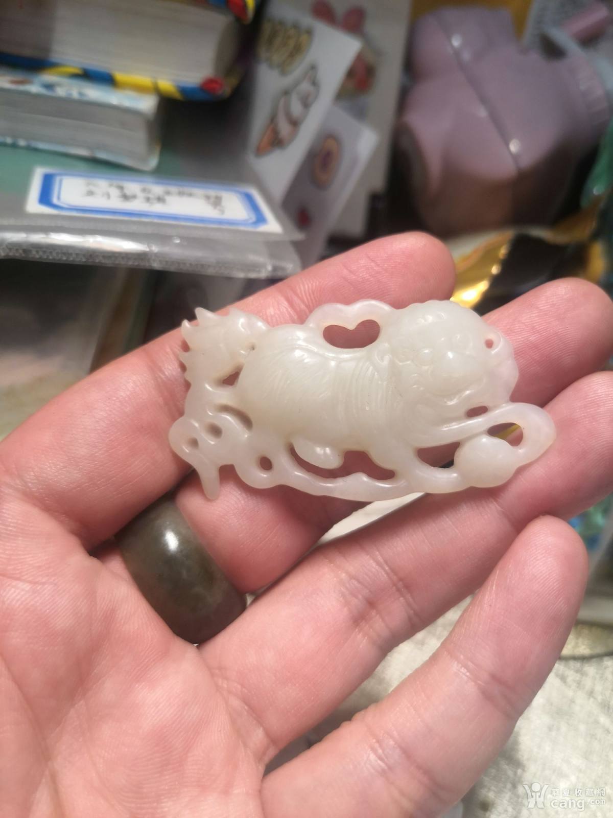 回流创汇的物件和田玉兽面满工珠子一对E155
