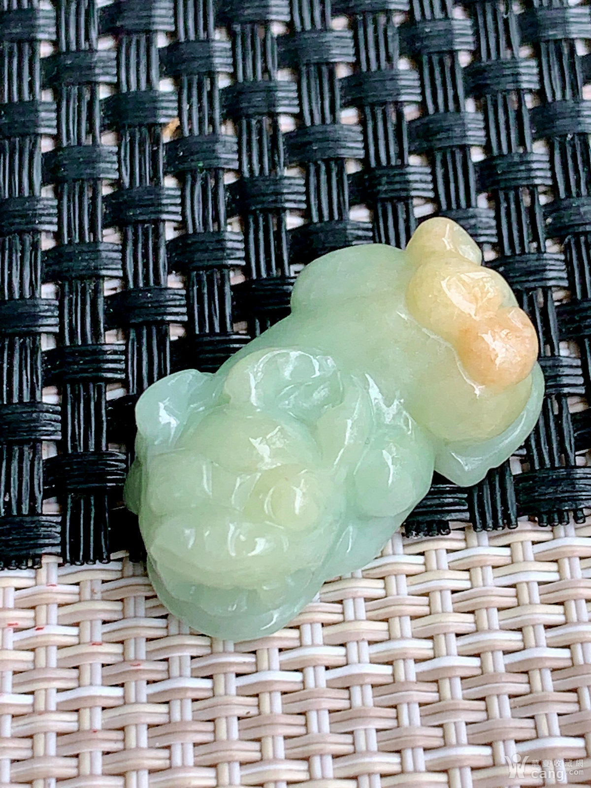 缅甸天然翡翠A货冰润双彩招财貔貅吊坠