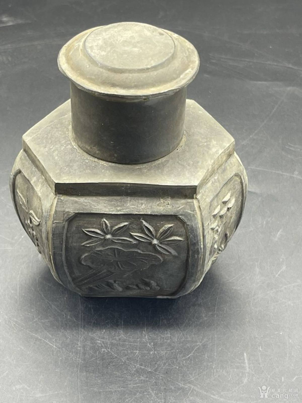 清末民初"福祥锡铺"点铜款刻花瓜棱锡制茶叶罐。