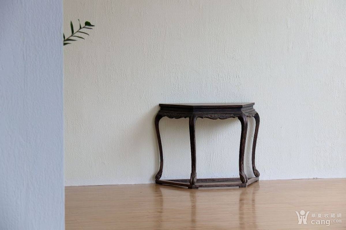楠木明式半桌 半桌整体呈梯形扇面,面为装芯独板。束腰素平,