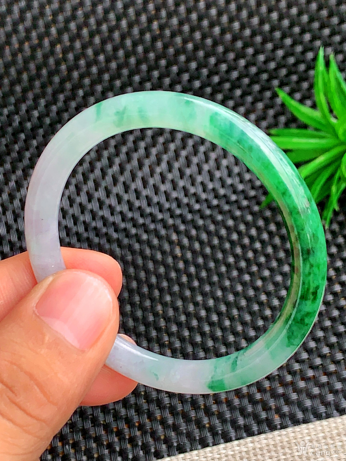 缅甸天然翡翠A货冰透水润飘花圆条手镯53.8圈口