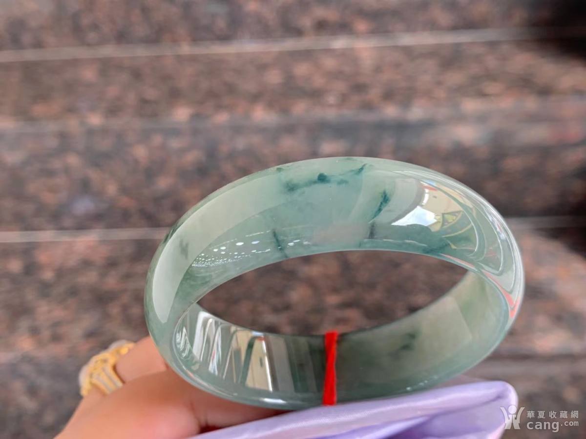 冰透蓝水底飘蓝花平安镯 完美 56-17-7mm