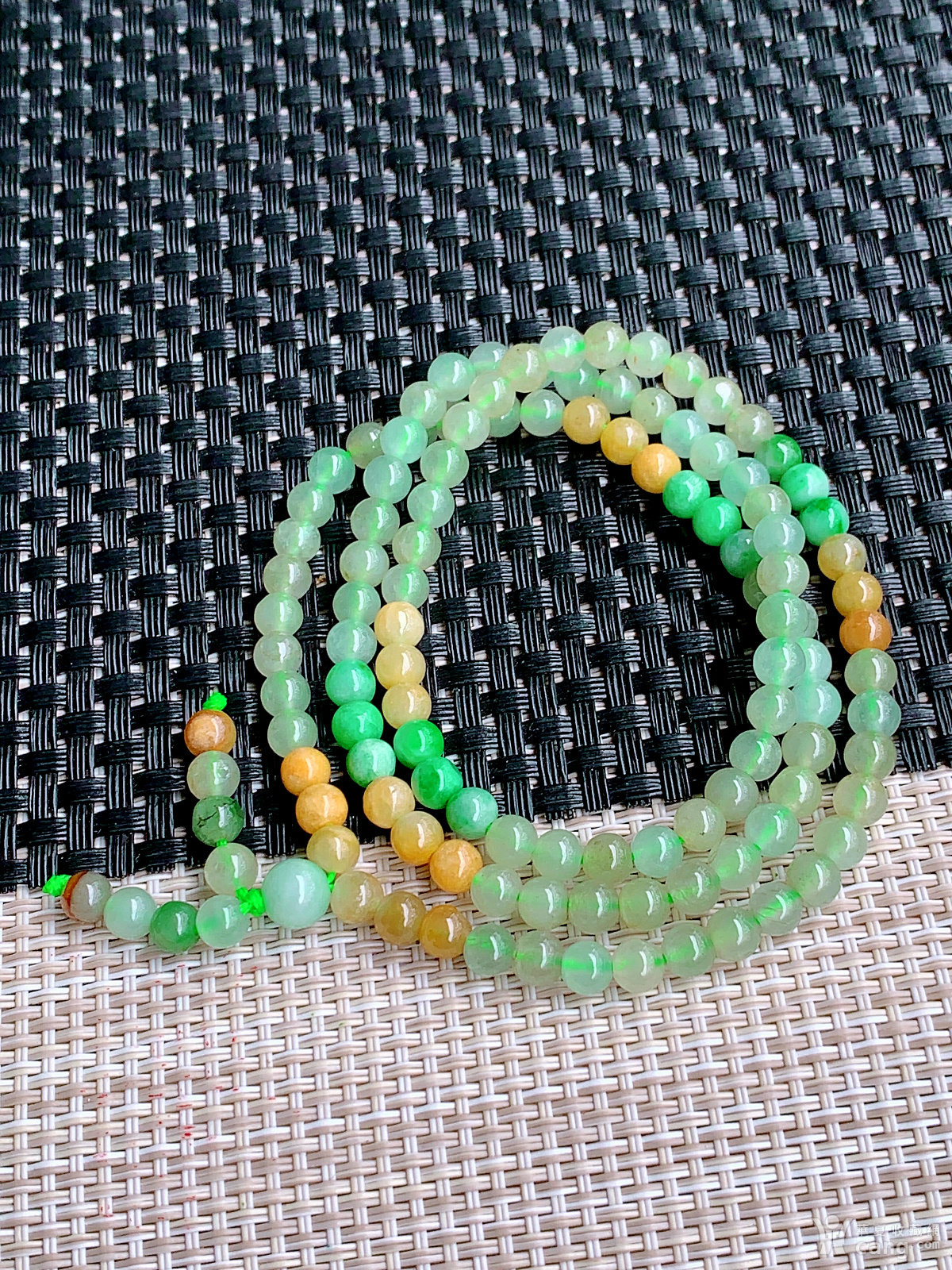 缅甸天然翡翠A货冰透水润双彩圆珠项链