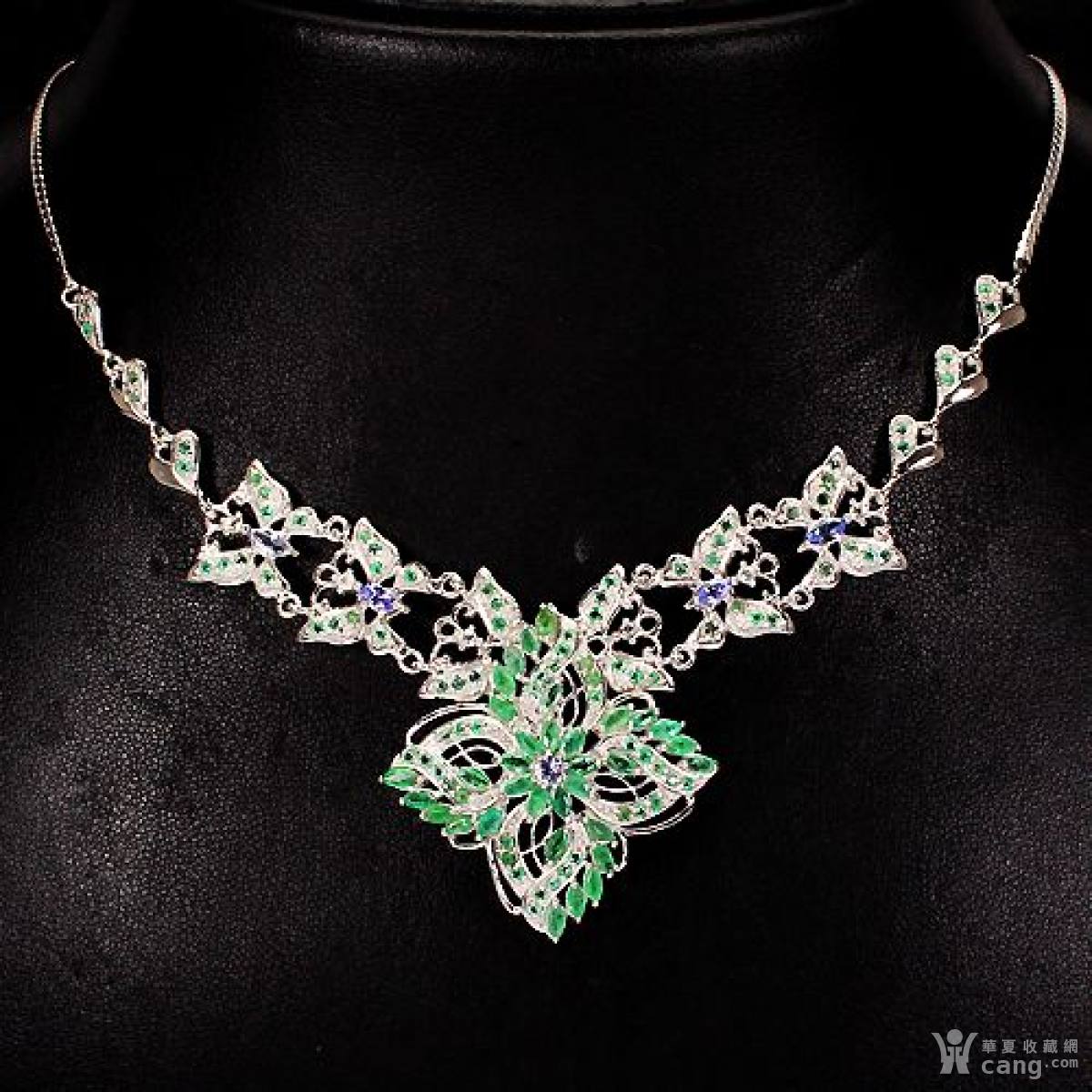 【现价再打8折特惠】天然祖母绿坦桑石925银镀14K金项链