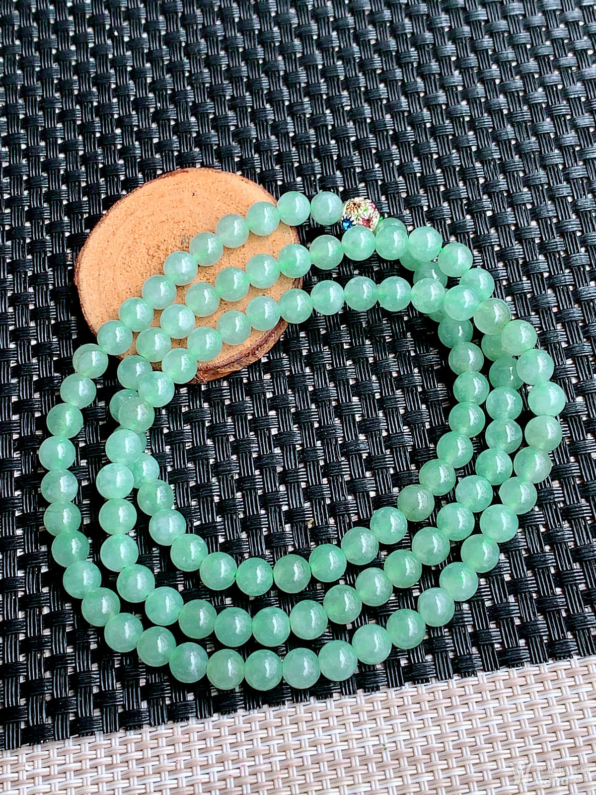 缅甸天然翡翠A货冰透水润满绿圆珠项链