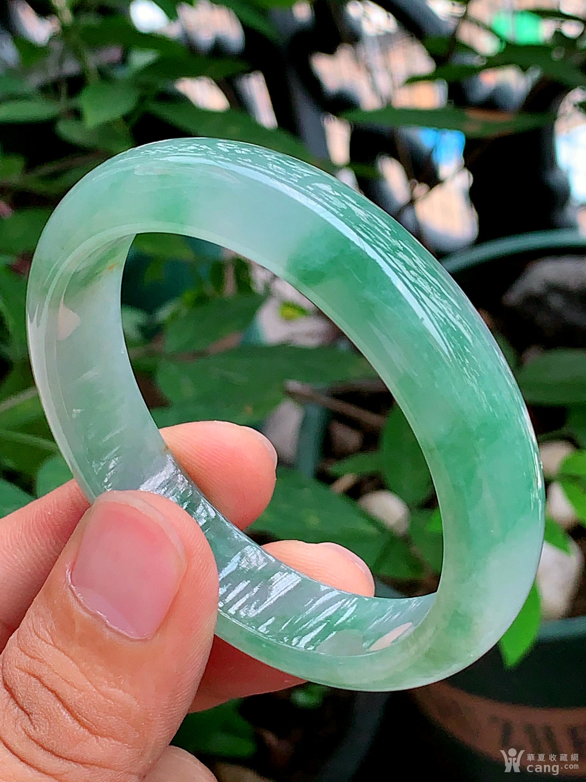 缅甸天然翡翠A货冰透水润飘花宽边手镯56.6圈口