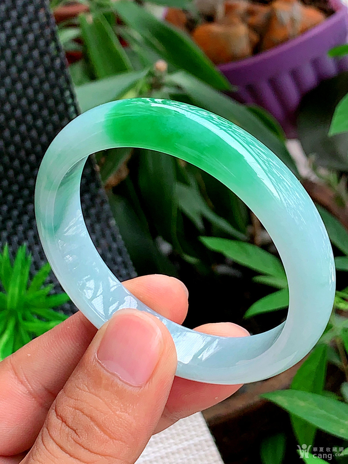 缅甸天然翡翠A货冰透水润飘阳绿宽边手镯59圈口