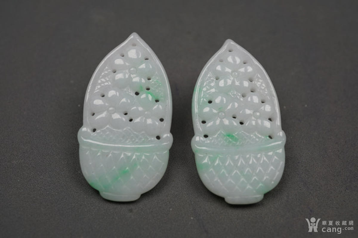 翡翠 花卉耳饰一对 C595