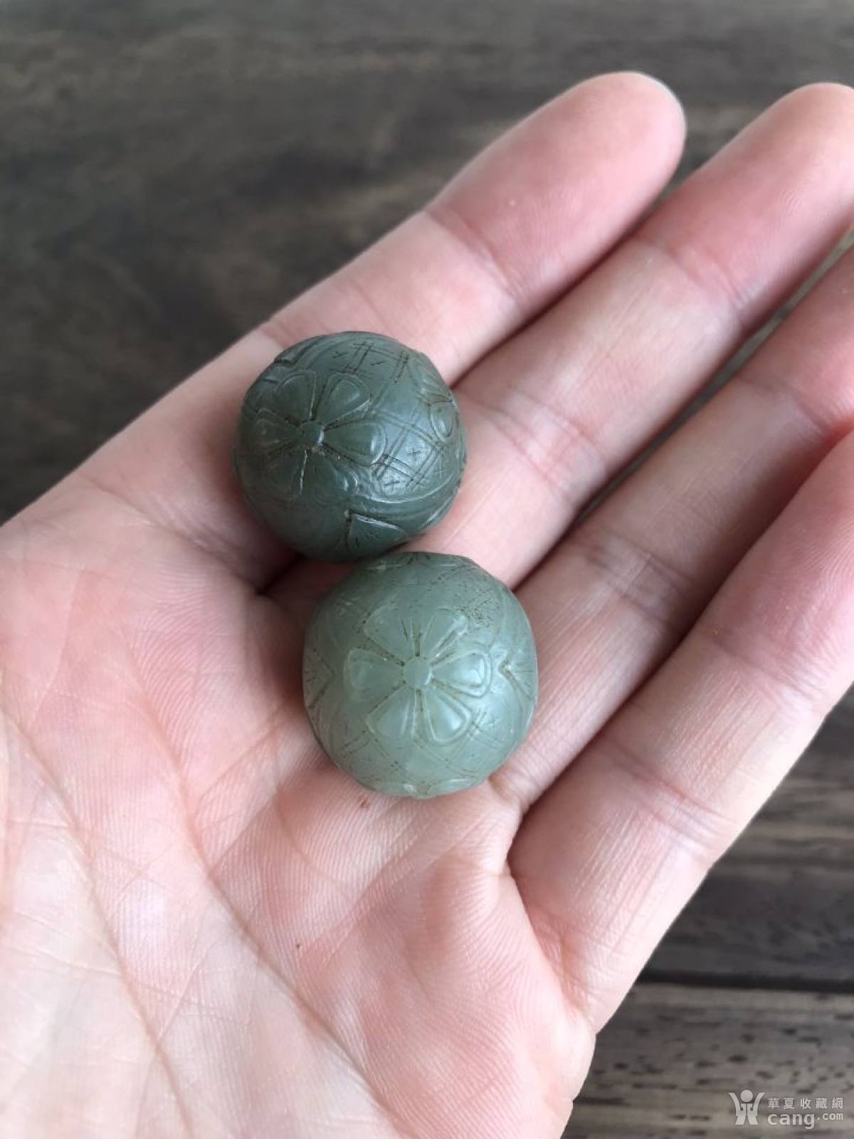 回流创汇的物件和田玉兽面满工珠子一对E155