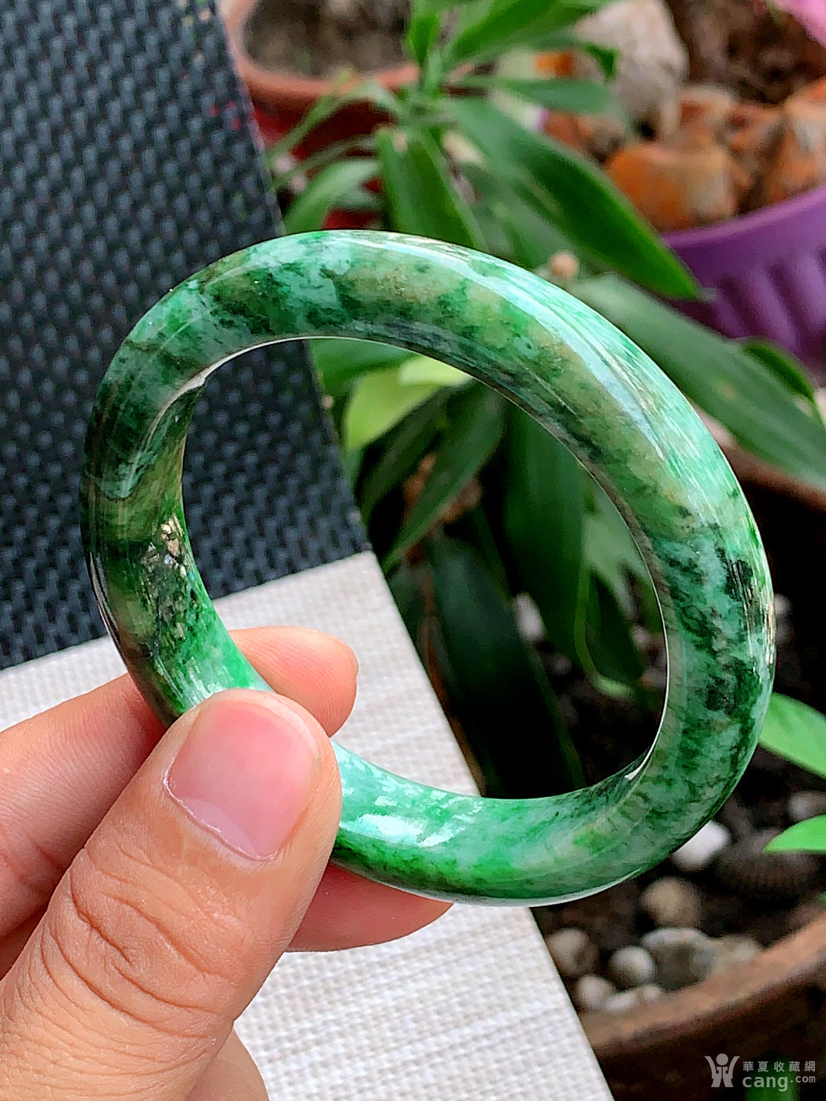 缅甸天然翡翠A货细腻飘花宽边手镯60圈口