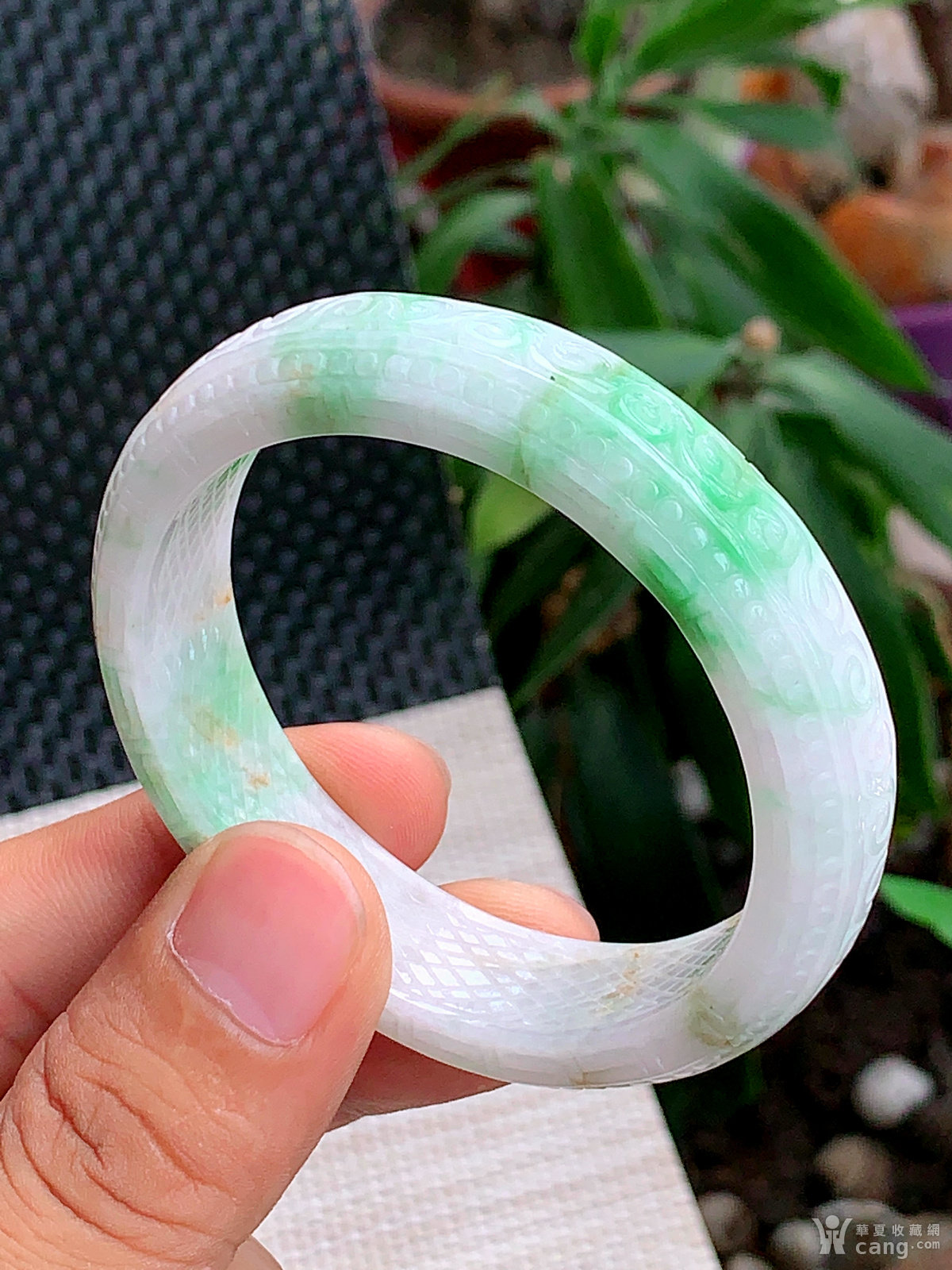 缅甸天然翡翠A货冰润飘花复古花雕宽边手镯55.5圈口