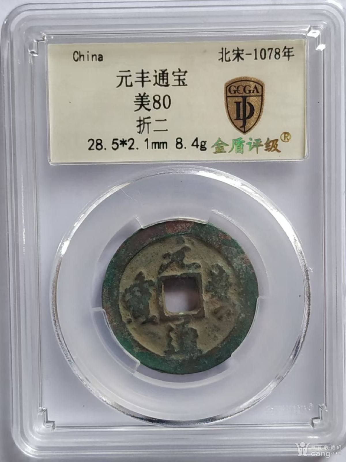 金盾评级北宋元丰通宝折二美80直边