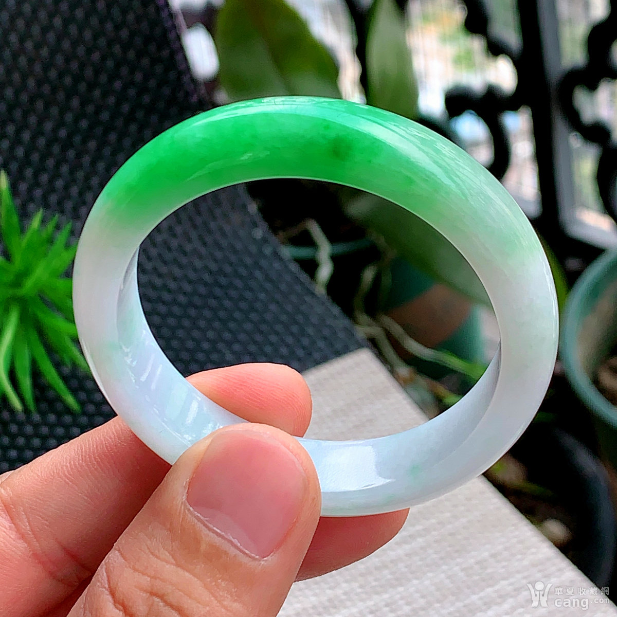 缅甸天然翡翠A货冰润飘阳绿宽边手镯51圈口