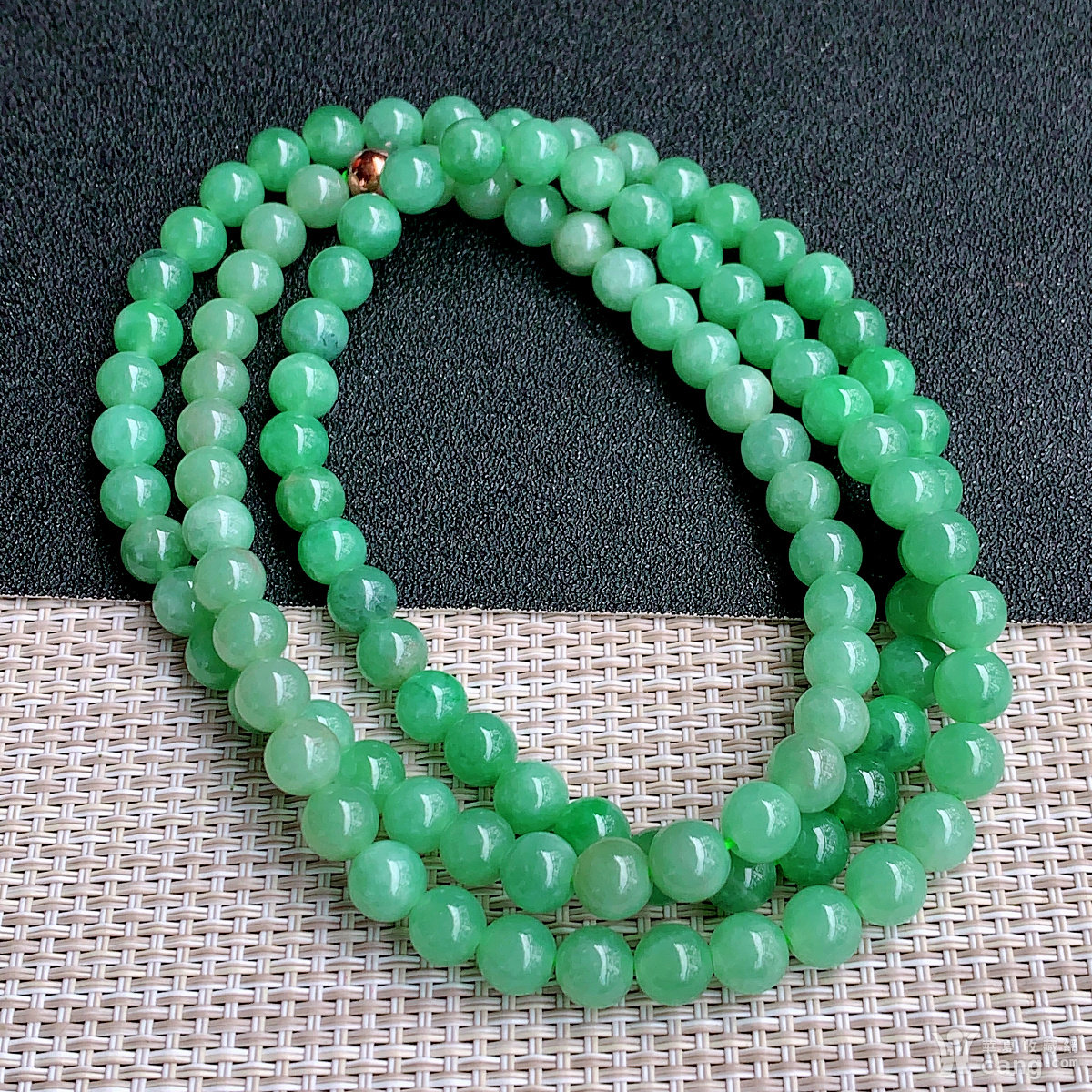 缅甸天然翡翠A货冰透水润满绿圆珠项链