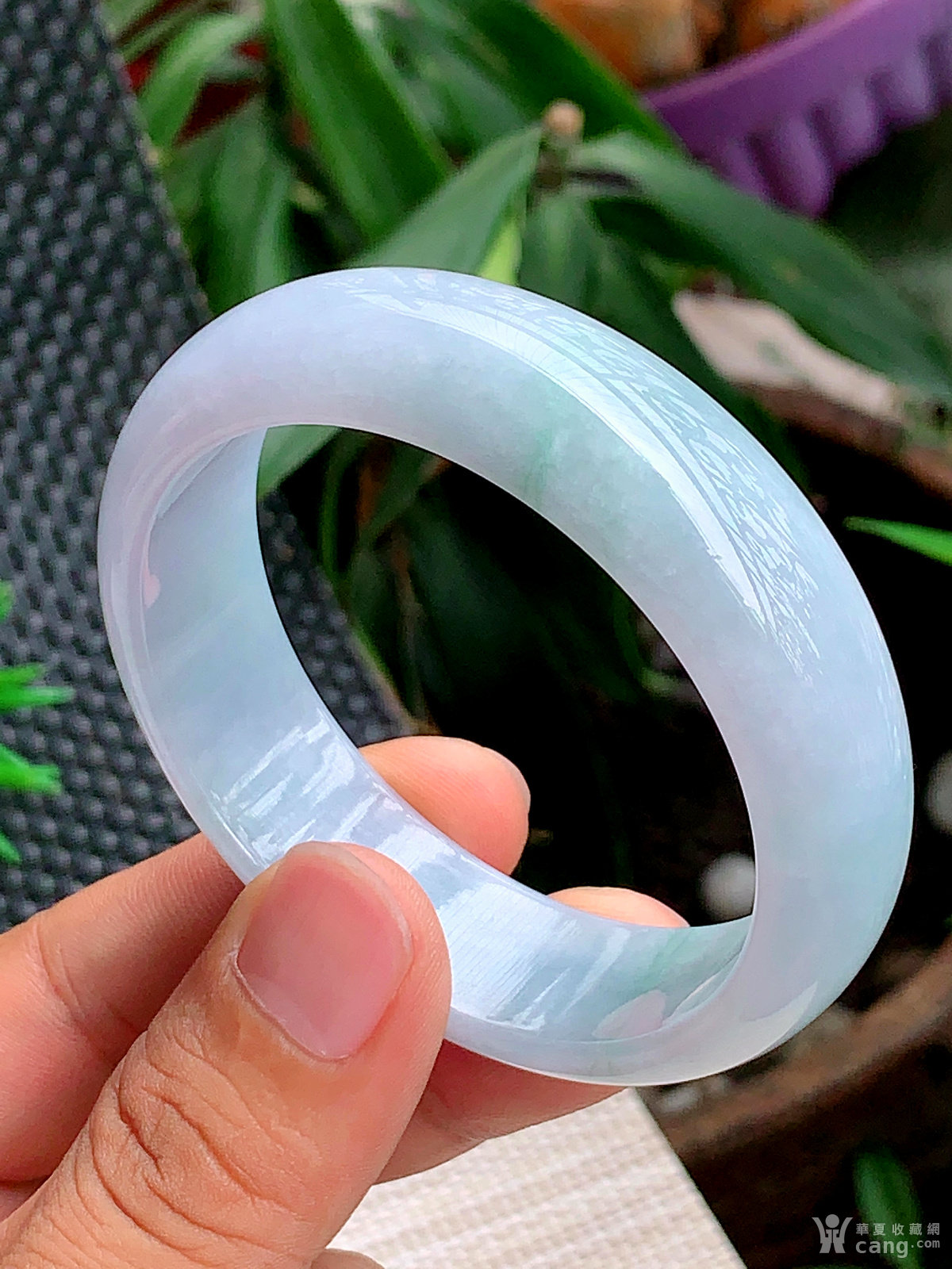缅甸天然翡翠A货冰透水润春带彩宽边手镯59圈口