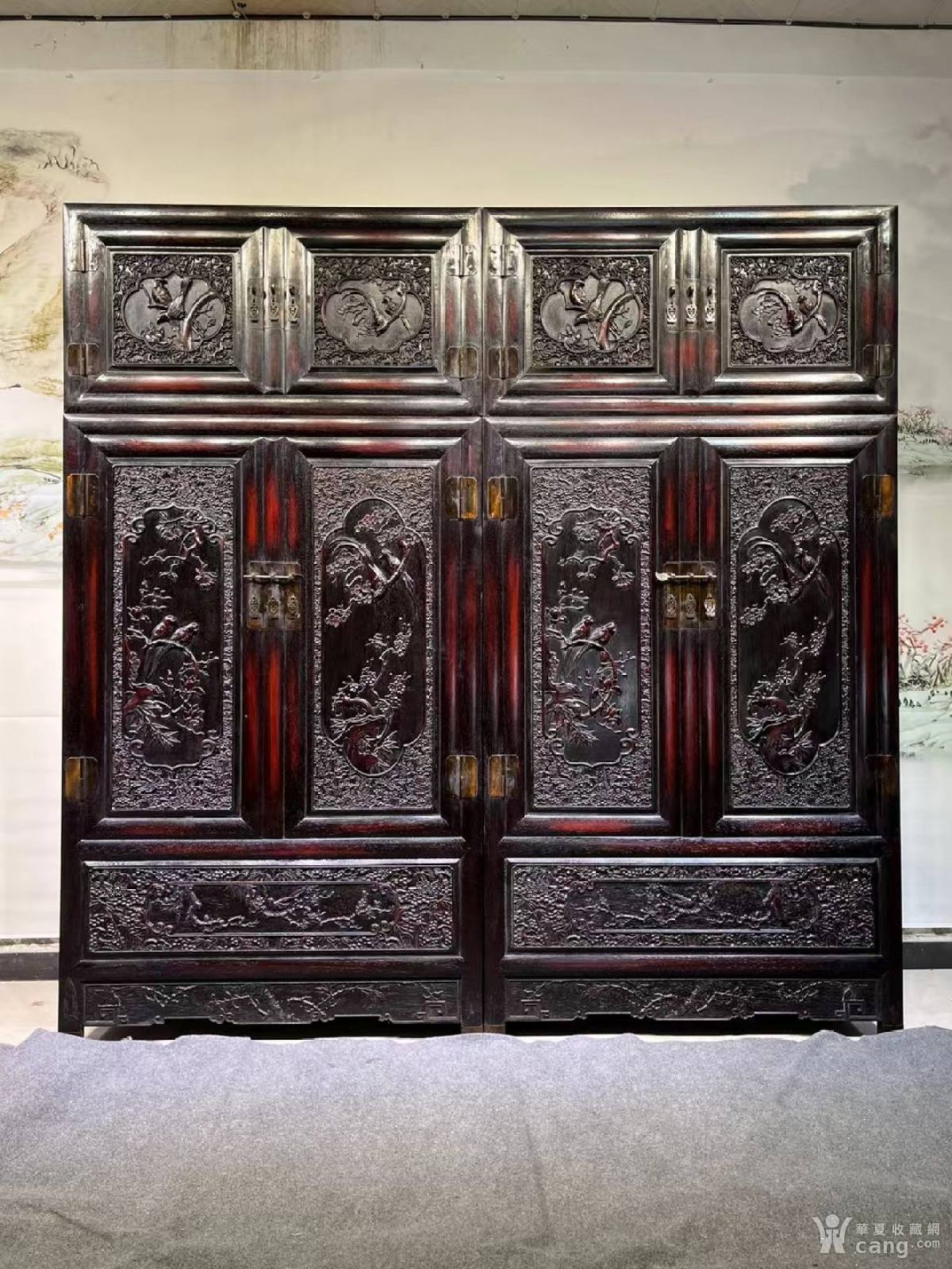 清,檀木顶箱柜 深浮雕刻花鸟,寓意吉祥 包将厚重,质感细腻