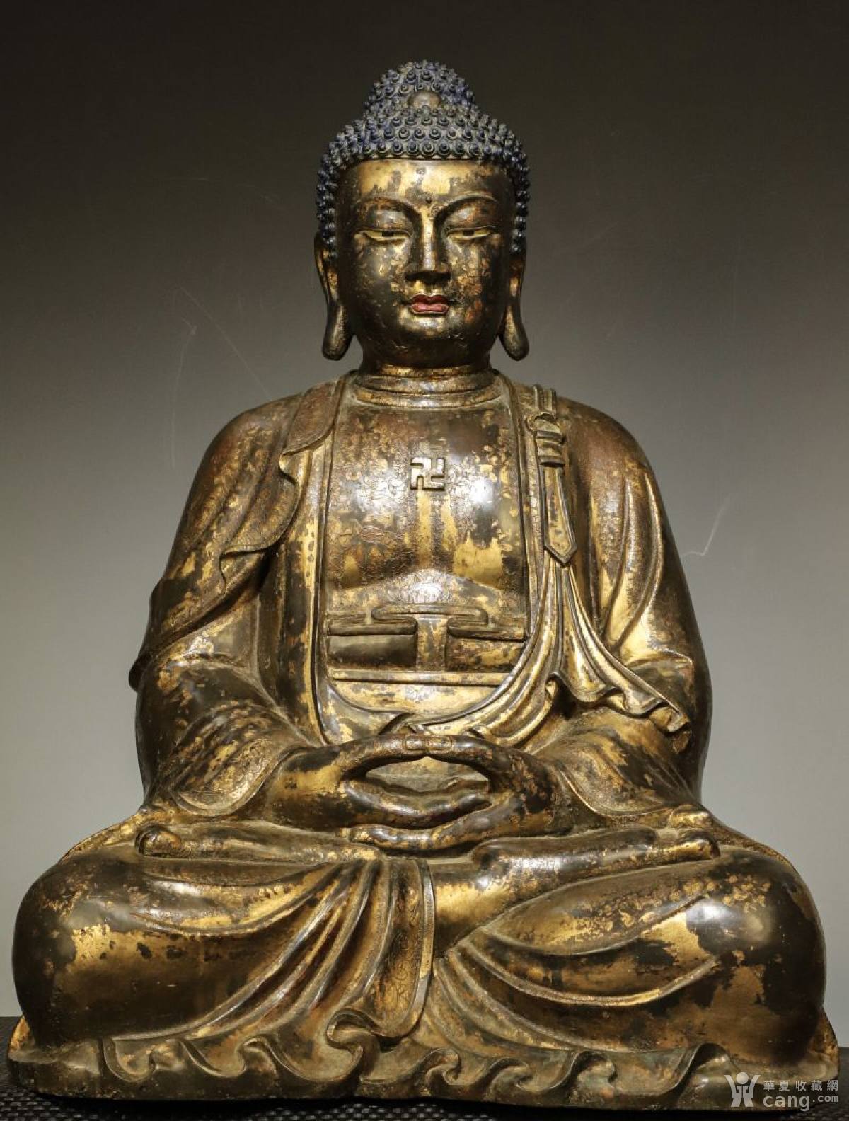铜鎏金、阿弥陀佛像 重63.2斤.高66长46宽38厘米.开