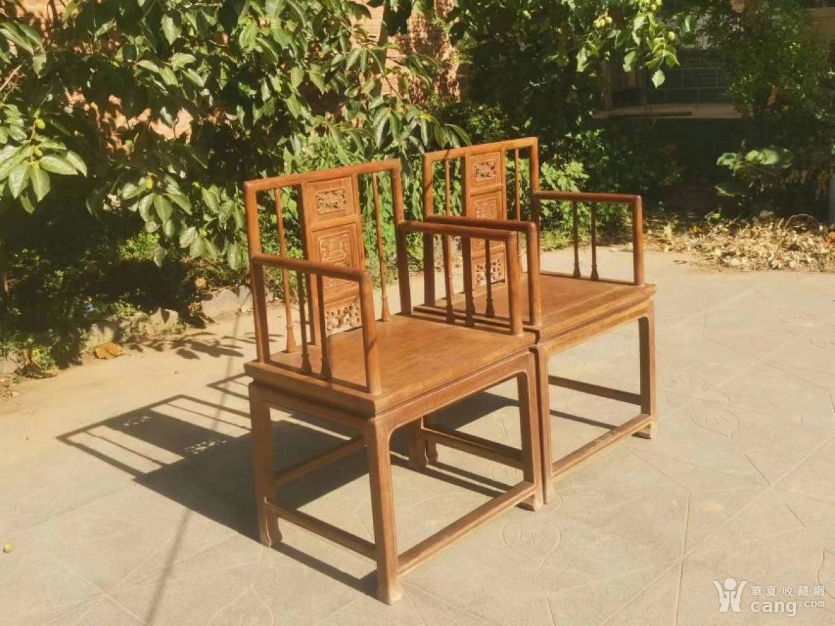 红榉木方腿马蹄玫瑰椅,背板中间雕刻博古熏炉,上面雕刻如意蝙蝠