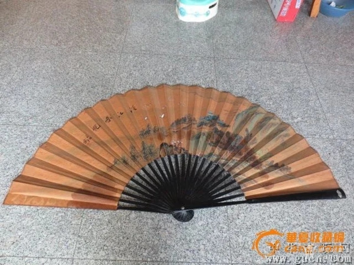 318号【汪红】山水画老扇子,品相如图。保真包老。