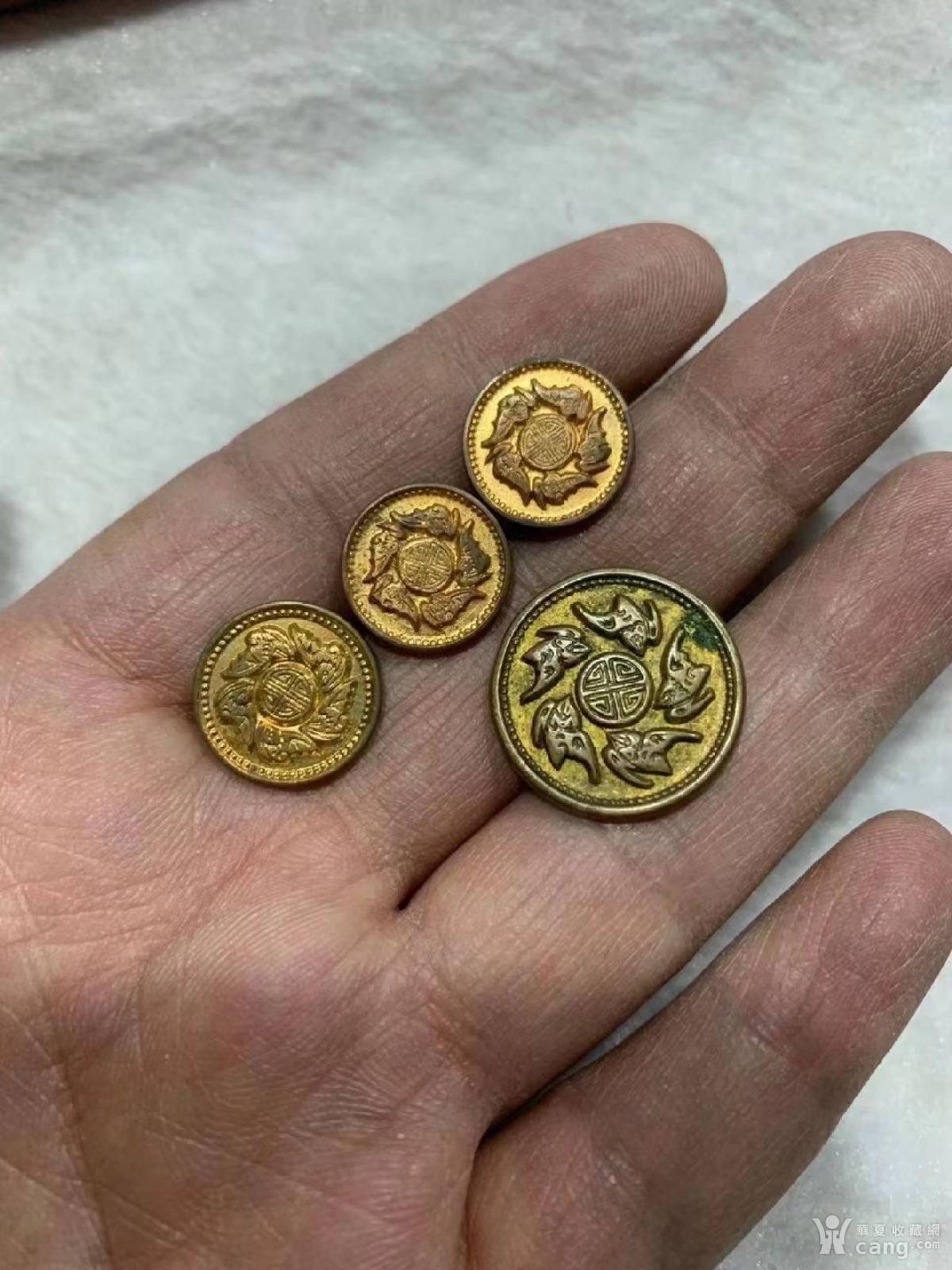 清末五福捧寿鎏金扣子4颗
