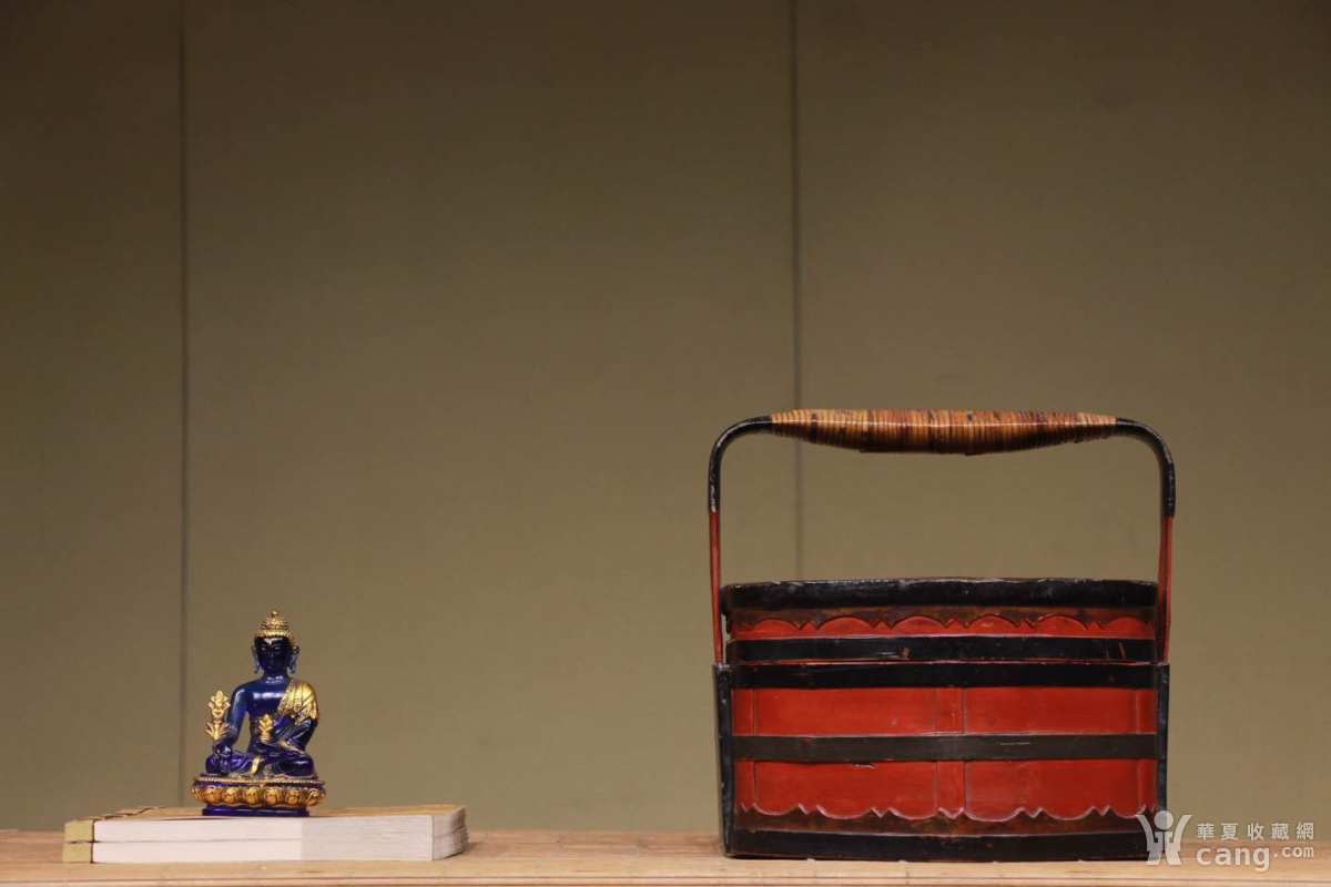 竹编彩绘提篮 此提呈六角,线条流畅,通体朱红漆,盖子上