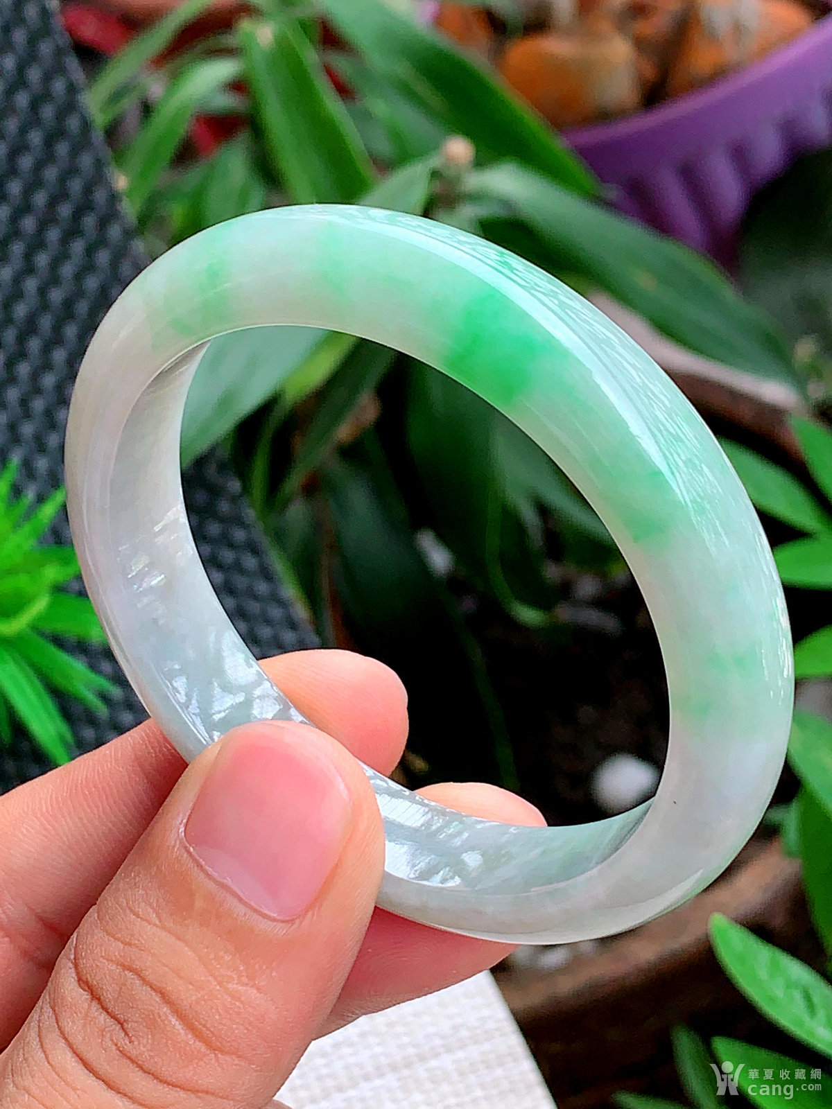 缅甸天然翡翠A货冰润飘花宽边手镯57.3圈口