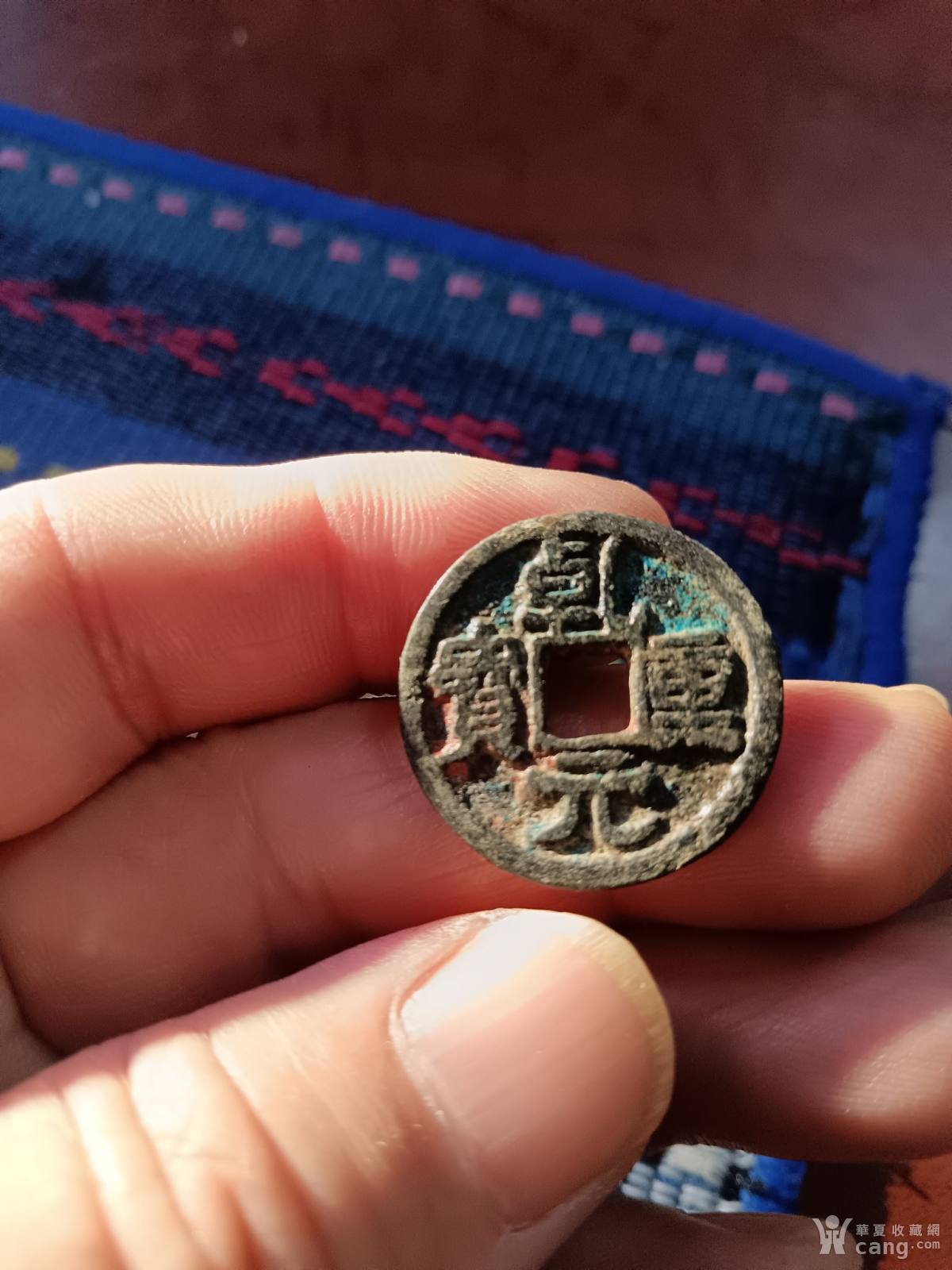 青花瓷器盖子,有小磕,有冲线如图所示