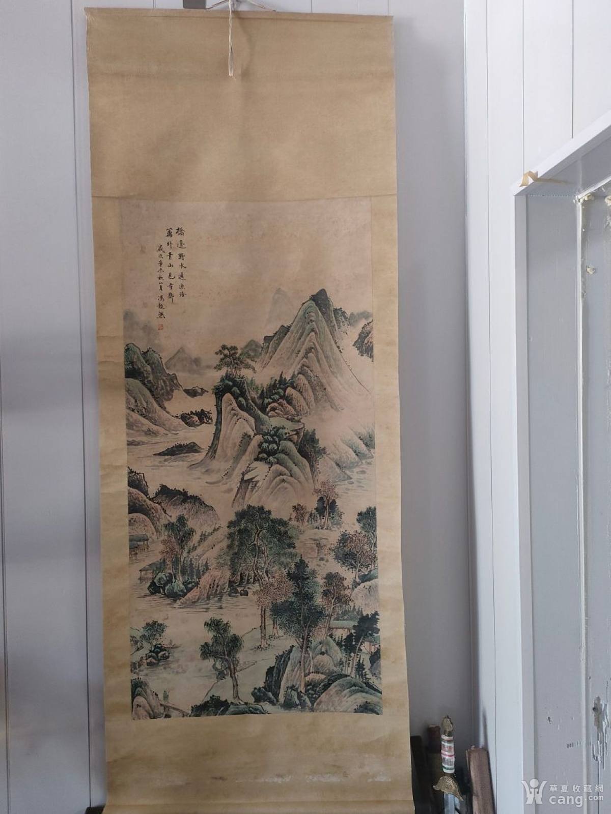 清代冯超然山水立轴画一副,绘画精美绝伦,布局合理,山壑间云气