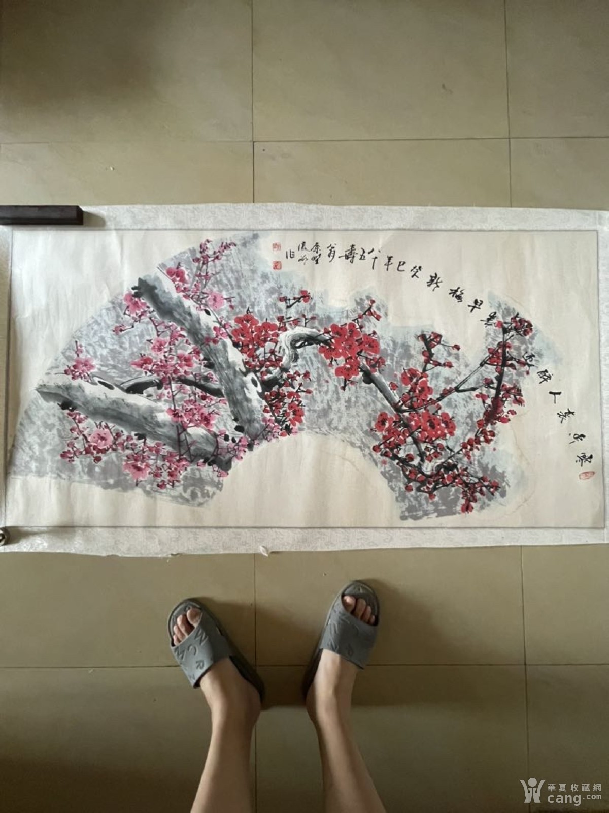 丁凤如梅花画花卉画字画作品水墨梅花纯手绘国画作品扇面横幅
