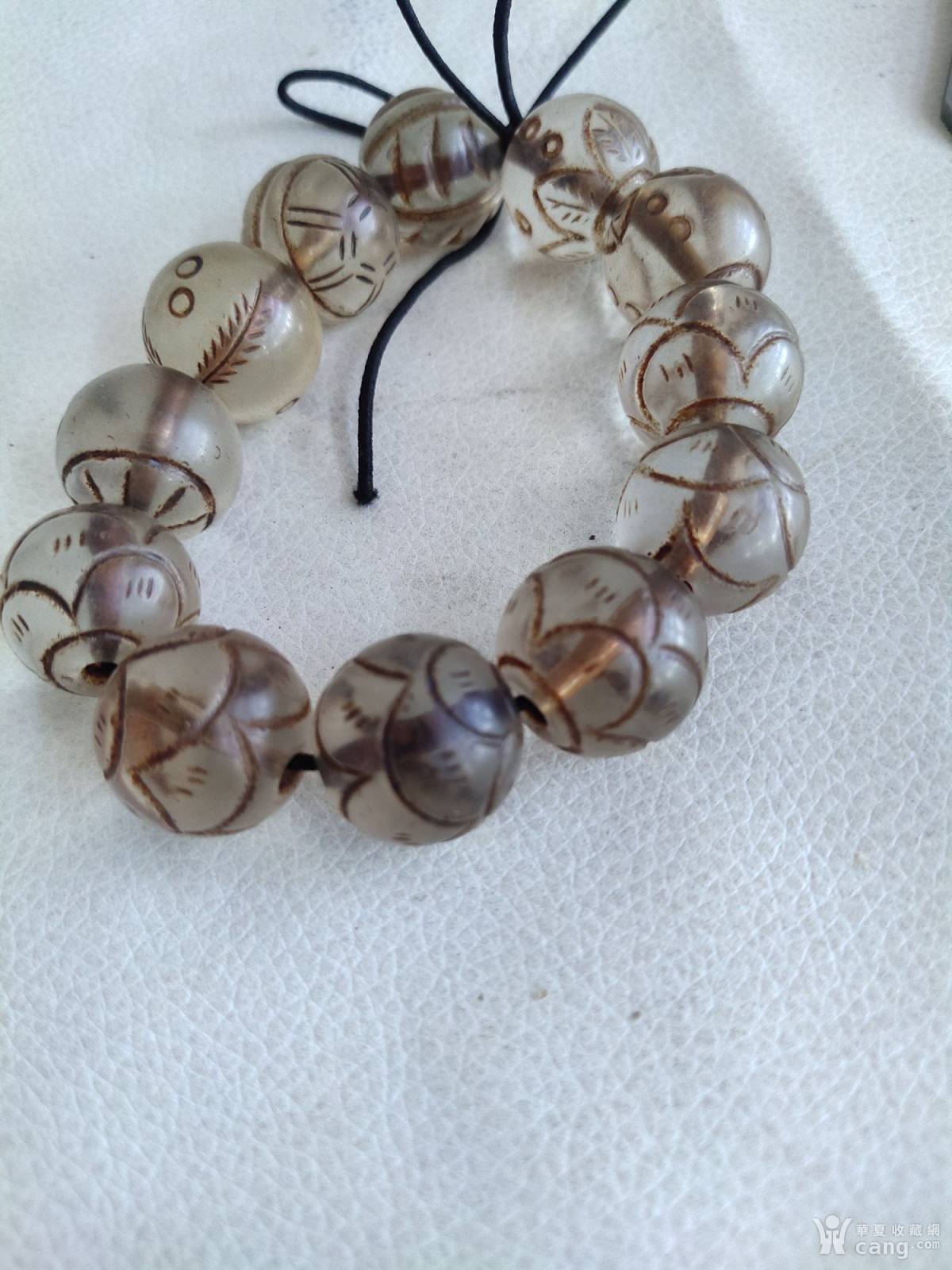 清代水晶刻花莲花龟背纹手串一个,完整。