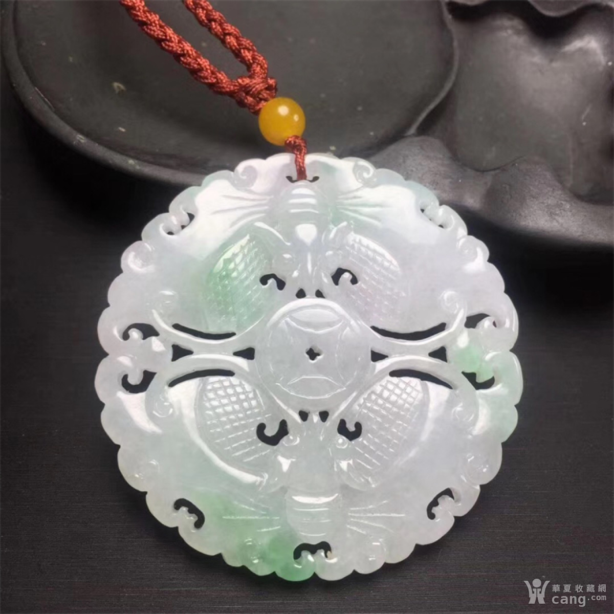 z91创汇期白底青飘绿翡翠双面蝴蝶双蝶金钱圆佩