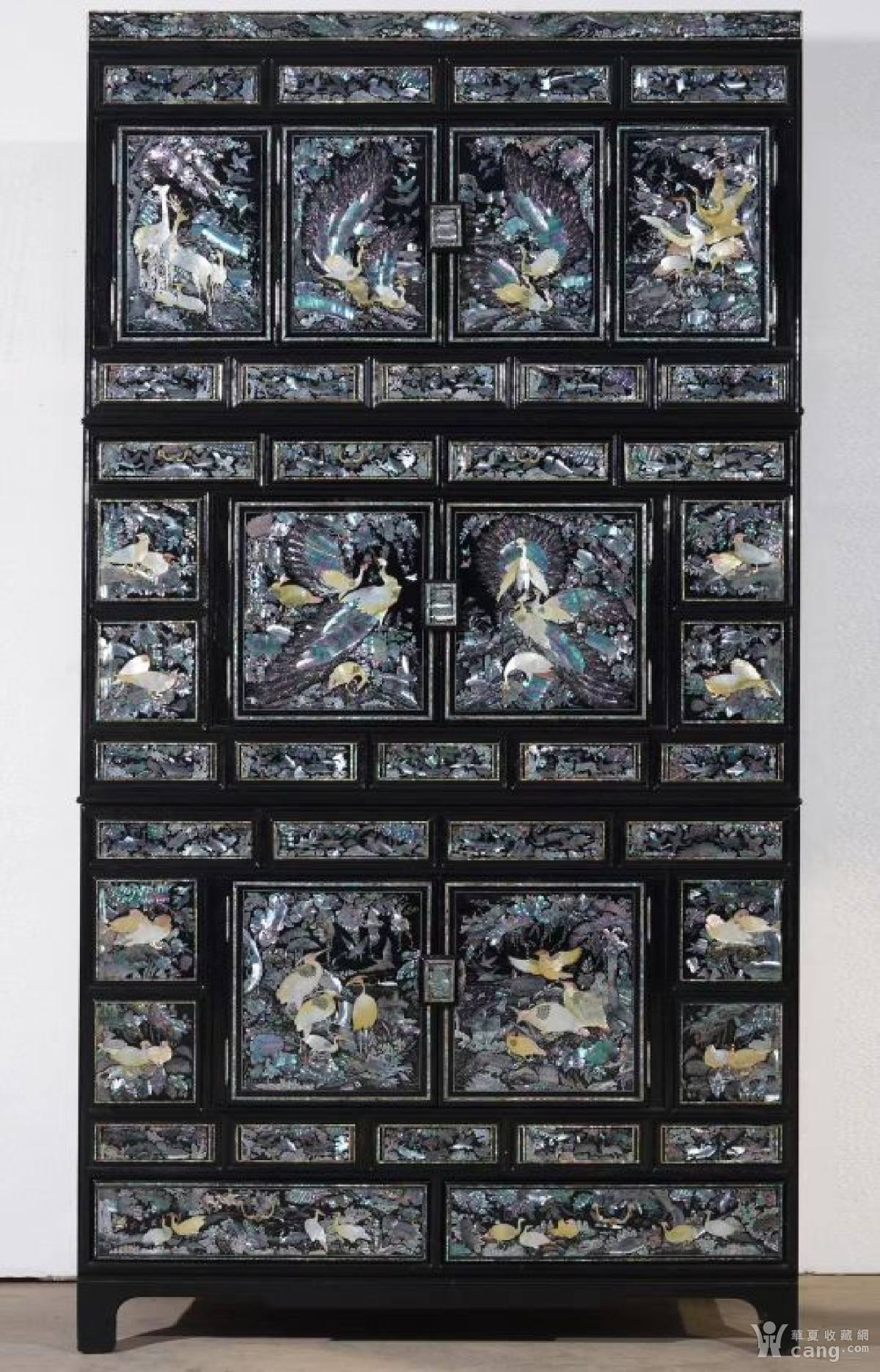 创汇时期木胎大漆嵌彩色螺钿花鸟纹三层柜