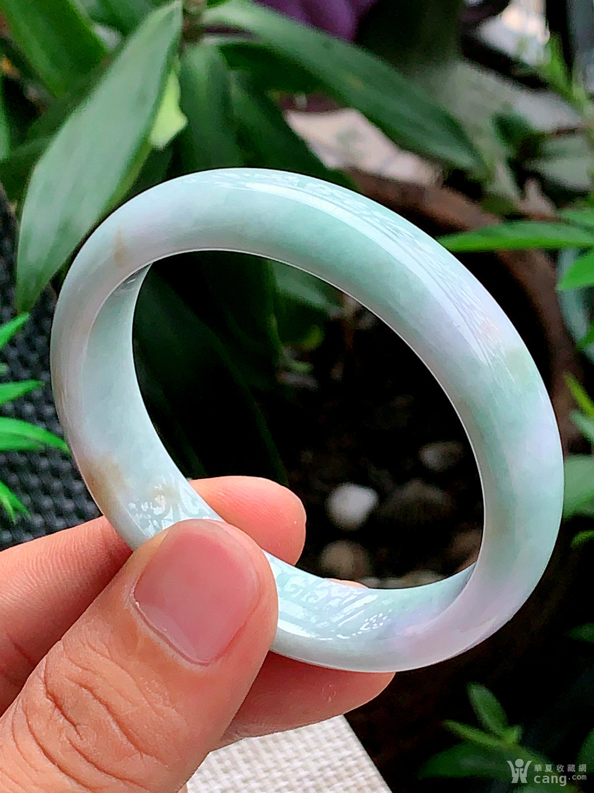 缅甸天然翡翠A货冰润春带彩宽边手镯54.8圈口