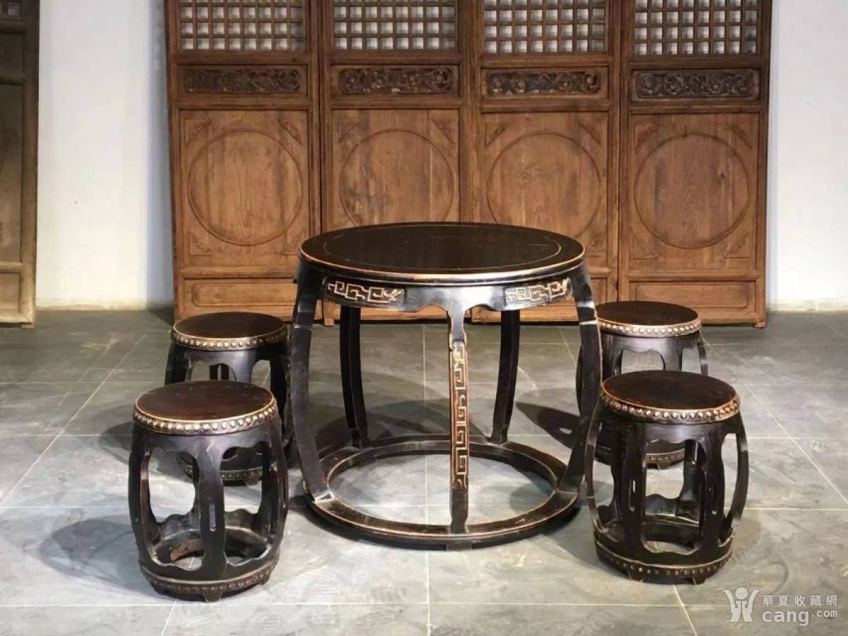 圆桌五件套,材质,榆木,年代,清末,尺寸高75,面直径80,