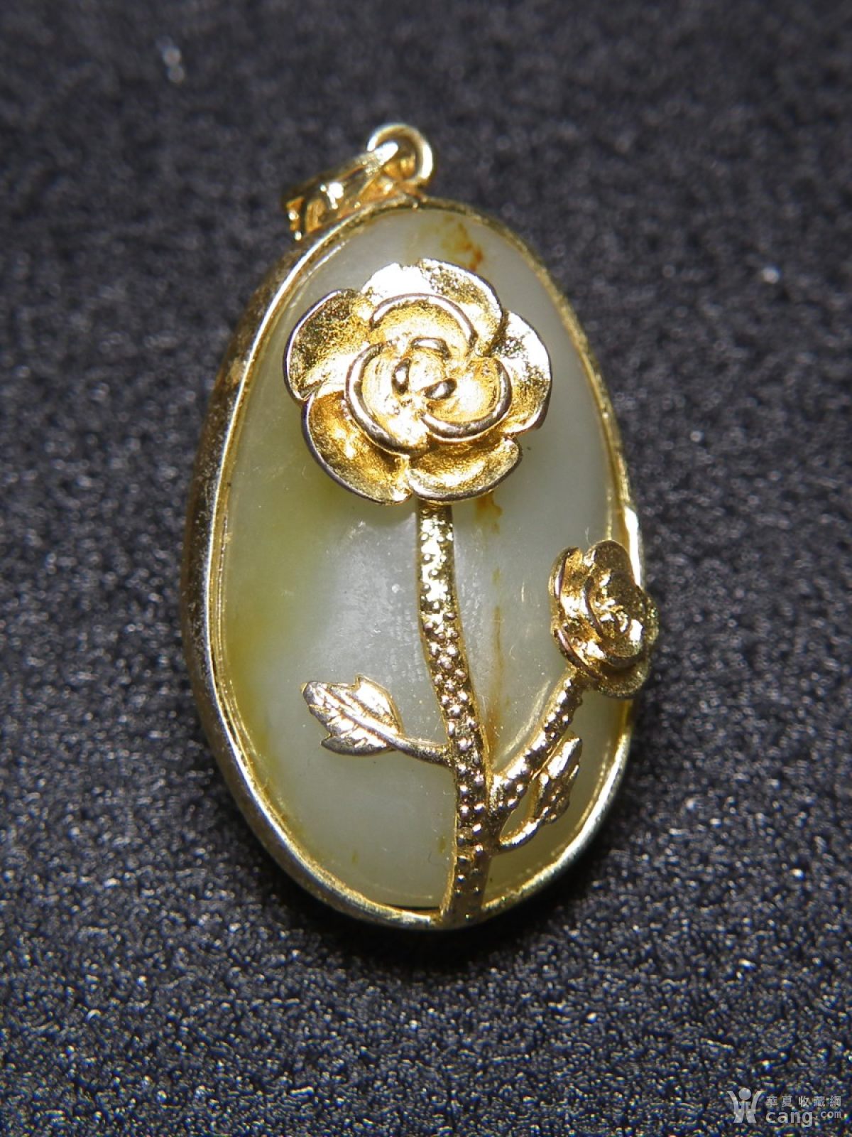 R01 佩戴漂亮 正宗和田玉带金皮沁随型料包合金铜大坠佩