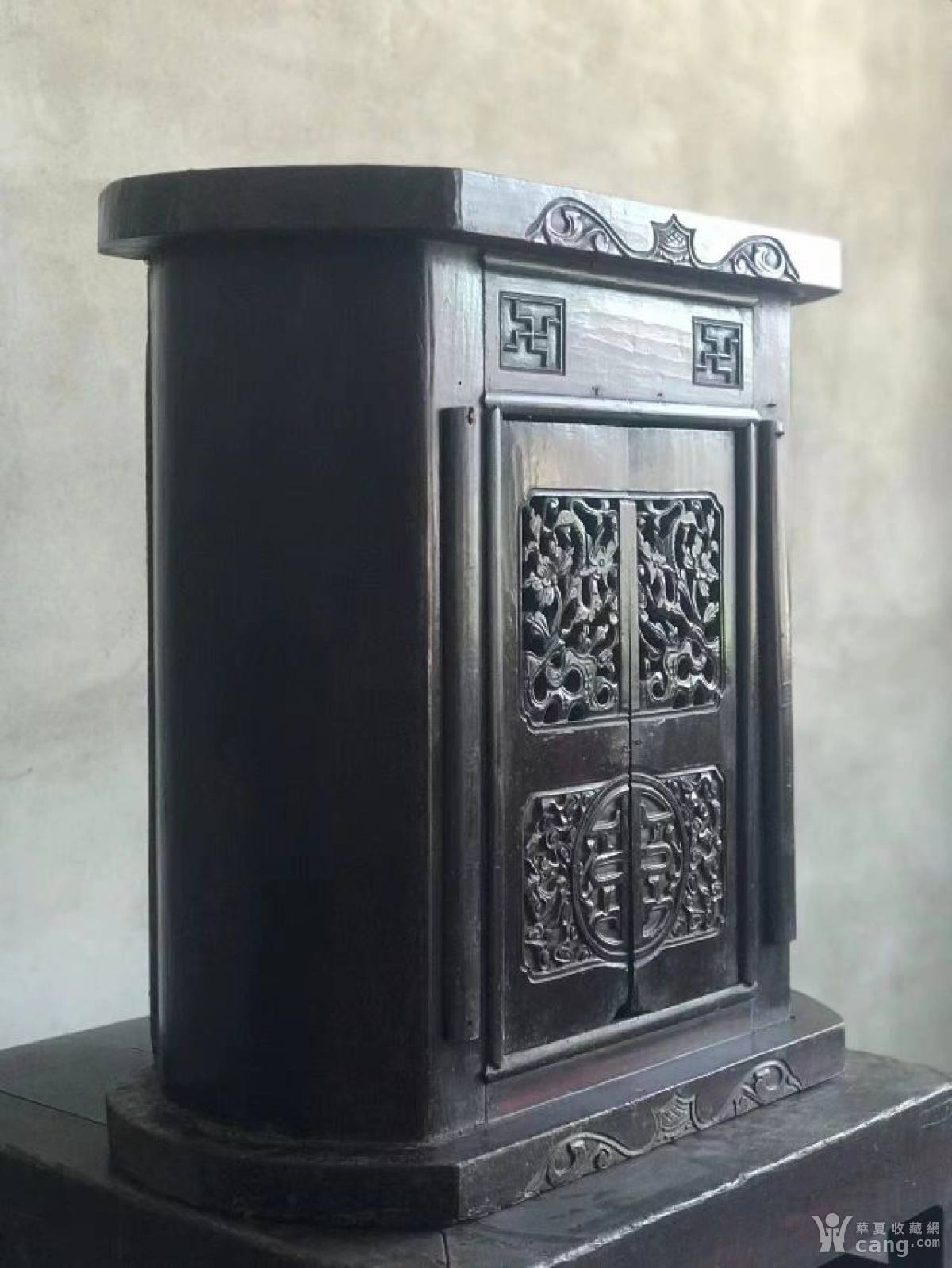 佛龛,品相完美,雕工精湛,形制独特为椭圆曲线,清中期楠木,原