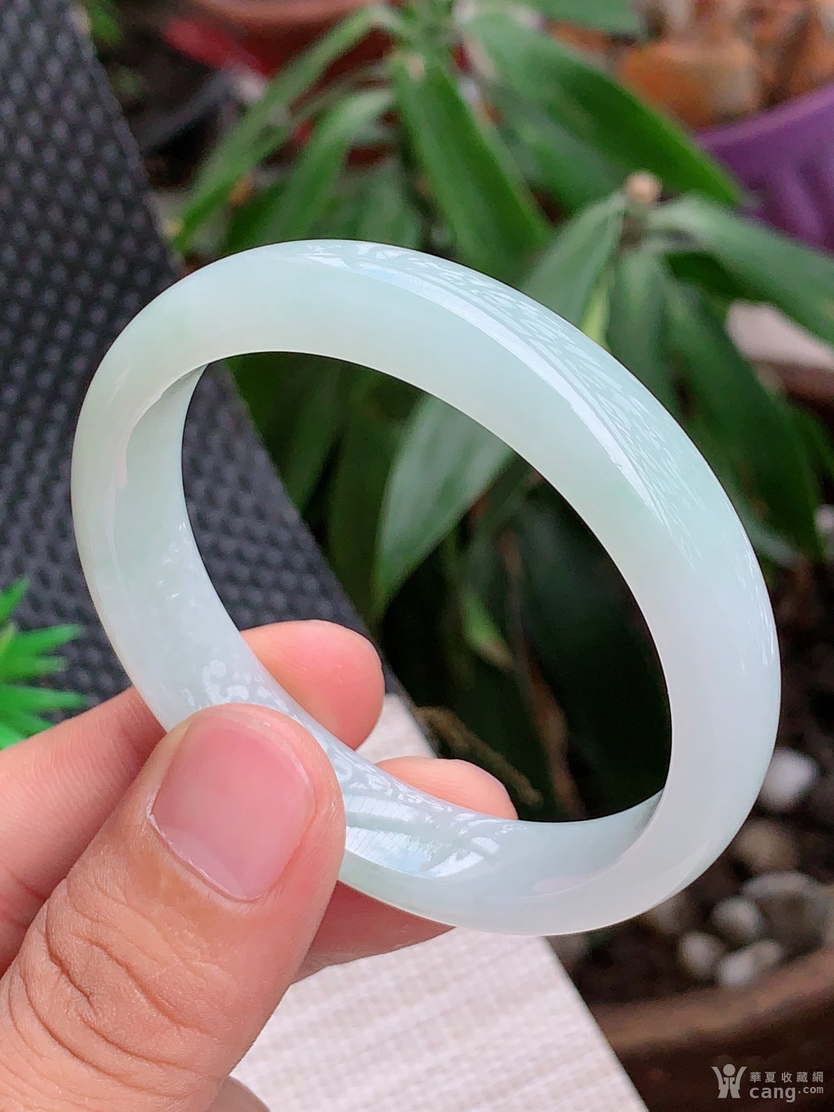 缅甸天然翡翠A货冰透水润浅绿宽边手镯56.5圈口