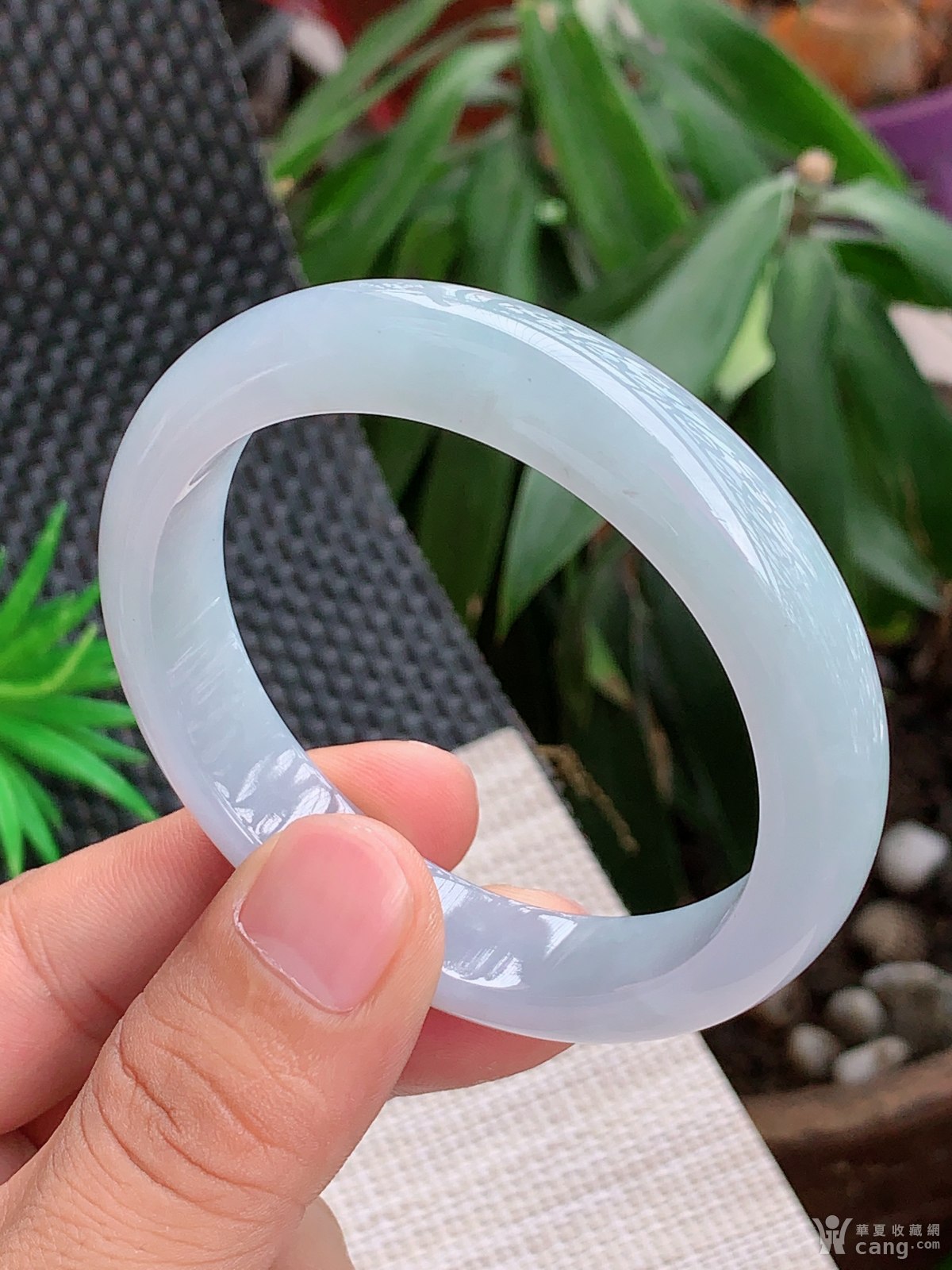 缅甸天然翡翠A货冰透水润浅紫宽边手镯59.3圈口