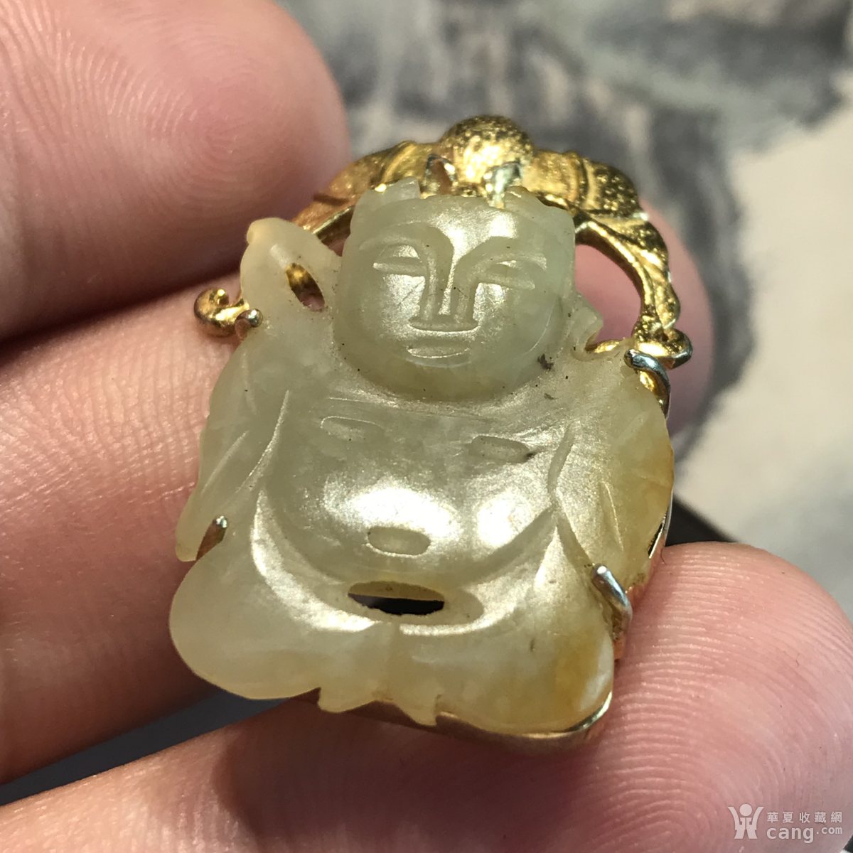 少见,明元和田白玉带黄沁银鎏金镶嵌小佛