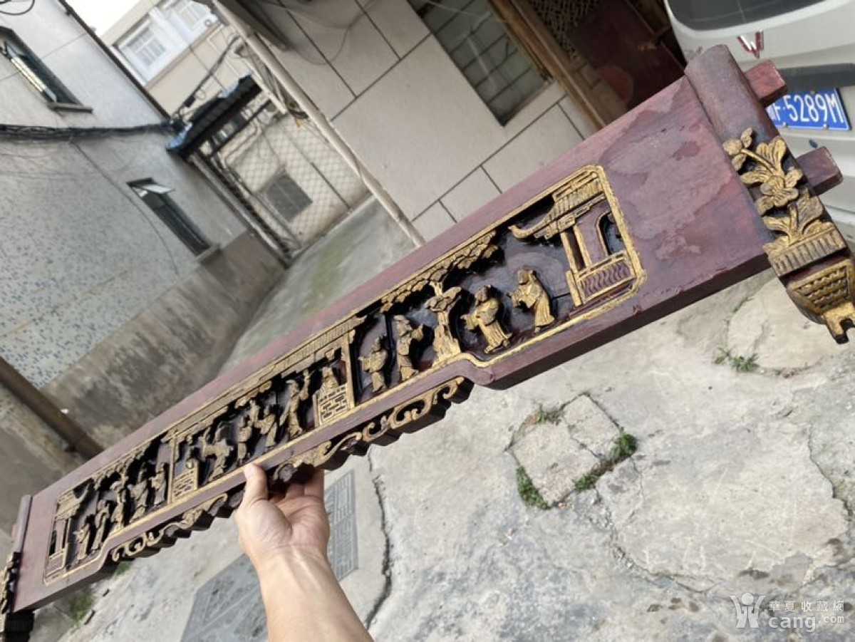 晚清民国鎏金深雕人物故事图花板一块,长1.12米,非常大气漂