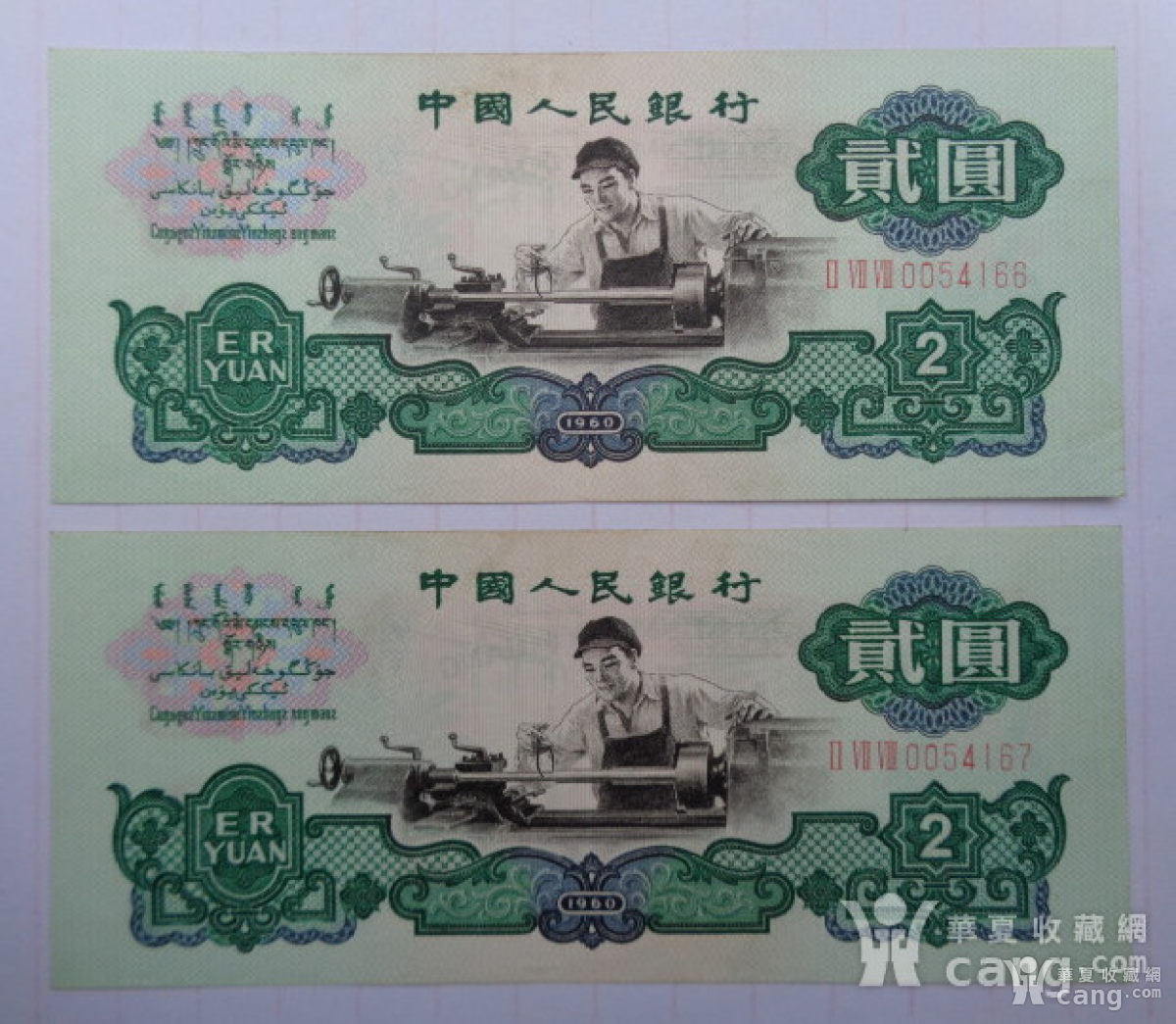 老人民币全品三版车工贰圆两张连号(五星水印)